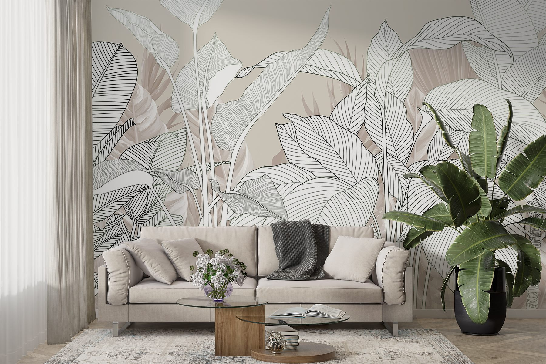Premeňte svoj priestor pomocou tejto úžasnej nástennej maľby “Jemné línie sa prepletajú cez svieže listy”. Predstavte si, že sa zobudíte, prenikne cez vás slnečné svetlo a máte pocit, že ste vstúpili priamo do pokojnej džungle. Elegantný dizajn jemných, prepletených línií a sviežej zelene vytvára upokojujúcu atmosféru – ideálnu pre útulný čitateľský kútik alebo nápaditú herňu. Každý pohľad prináša do interiéru kúsok prírody. Je to ako závan čerstvého vzduchu, ale bez chrobákov! Ideálne pre milovníkov jedinečných dekorácií, ktorí oceňujú krásu jednoduchosti. Perfektné na rýchle vylepšenie štýlu alebo vytvorenie charakteristickej steny, ktorá vyvolá rozhovory.