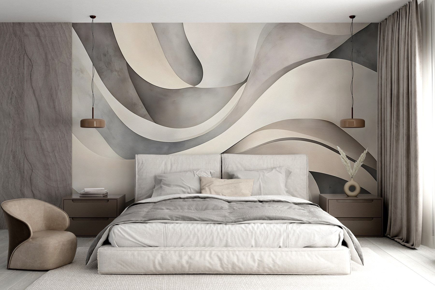Premeňte akúkoľvek miestnosť na upokojujúce útočisko pomocou tejto úžasnej nástennej maľby “Biele a sivé vlnité tvary”. Predstavte si to – jemný tanec elegantných vĺn v upokojujúcich neutrálnych tónoch, ideálny na vyvolanie radosti alebo len na pozvanie na čerstvý vzduch. Pôsobí ako jemné objatie vašich stien, ktoré zútulní zákutia bez toho, aby zahlcovalo priestor. Predstavte si, že popíjate rannú kávu, očami blúdite po týchto splývavých tvaroch a jednoducho… relaxujete. Je to takmer ako snenie. Táto nástenná maľba, ideálna pre moderné domovy, šepká sofistikovanosť a zároveň udržiava pohodu bez námahy. Prineste si domov trochu pokoja!