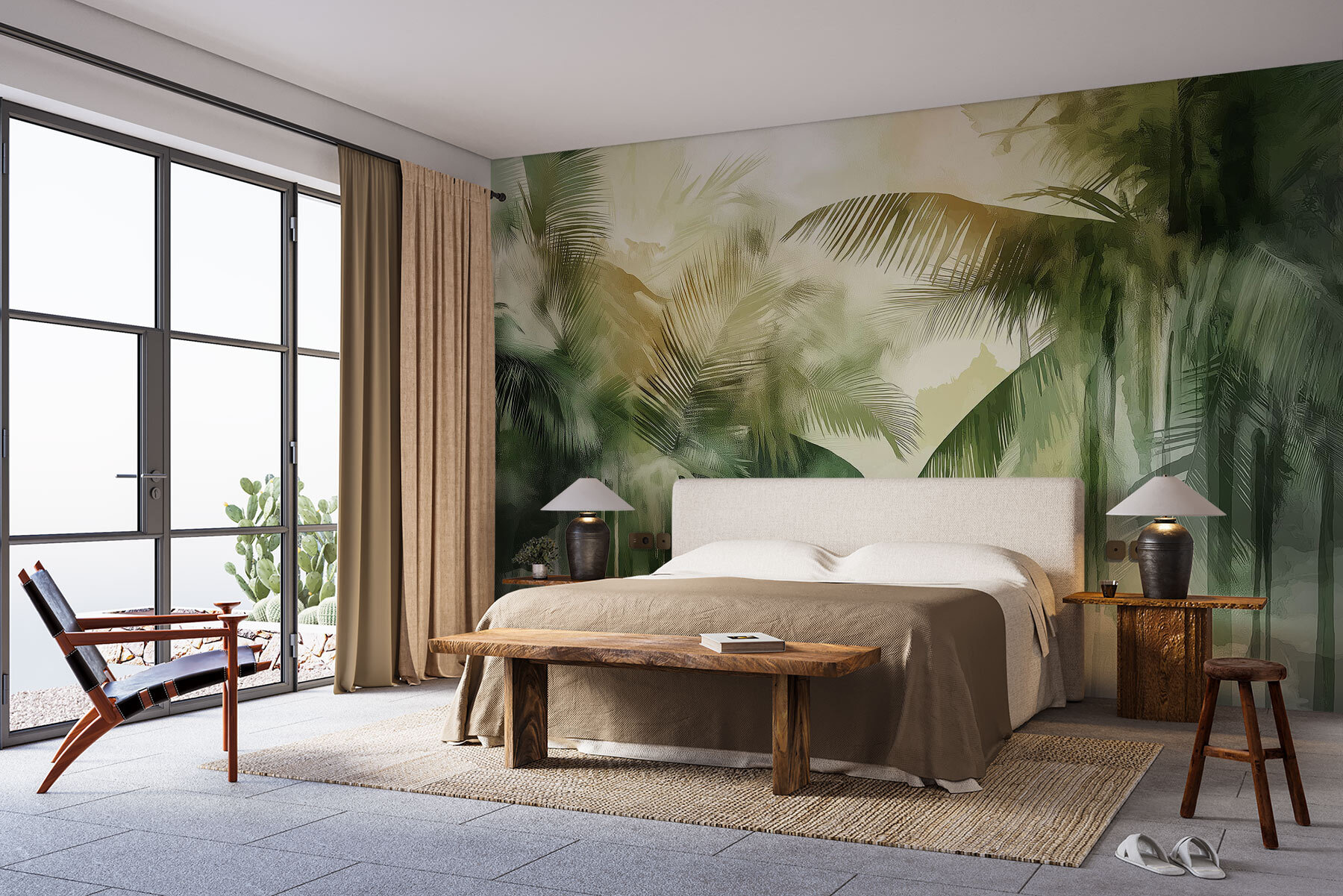 Premeňte svoj priestor na pokojnú tropickú dovolenku s touto úžasnou nástennou maľbou paliem. Predstavte si, že zakaždým, keď vstúpite do miestnosti, vstúpite do minivakácie – jemná zelená a teplá žltá spolu tancujú a vytvárajú pokojnú atmosféru, ktorá je ideálna pre akýkoľvek kút vášho domova. Táto nástenná maľba prinesie prírodu priamo na vaše steny, či už ju navrstvíte na útulný čitateľský kútik, alebo rozjasníte domácu kanceláriu. Je to ako mať kúsok raja bez chrobákov! Dodajte svojmu interiéru tento osviežujúci chladný nádych a kto vie – možno sa vám bude snívať o piesočnatých plážach namiesto pracovných termínov!