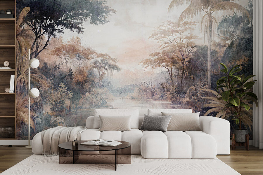 Premeňte svoj priestor na pokojné miesto na oddych s nástennou maľbou “Rieka so stromami a rastlinami”. Predstavte si, že vstúpite do zasnenej krajiny, kde sa bujná zeleň stretáva s pokojnou riekou – taká atmosféra! Táto fototapeta nie je len obkladom na stenu, je to ako mať kúsok prírody priamo doma. Jemné, zemité tóny nabádajú k pokoju, vďaka čomu sa každá lenivá nedeľa bude cítiť ako minidovolenka. Predstavte si útulný čitateľský kútik, túto nástennú maľbu ako pozadie, so šálkou teplého čaju v ruke. Starosti zrazu zmiznú a príroda vám bude šepkať sladké tóny. Ideálne pre tých, ktorí túžia po nádychu tropov bez spálenia od slnka. Nejde len o dekor – ide o pocit!