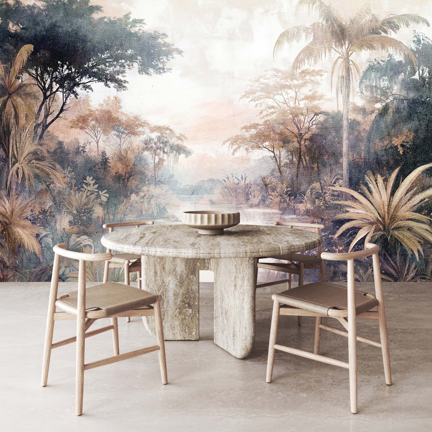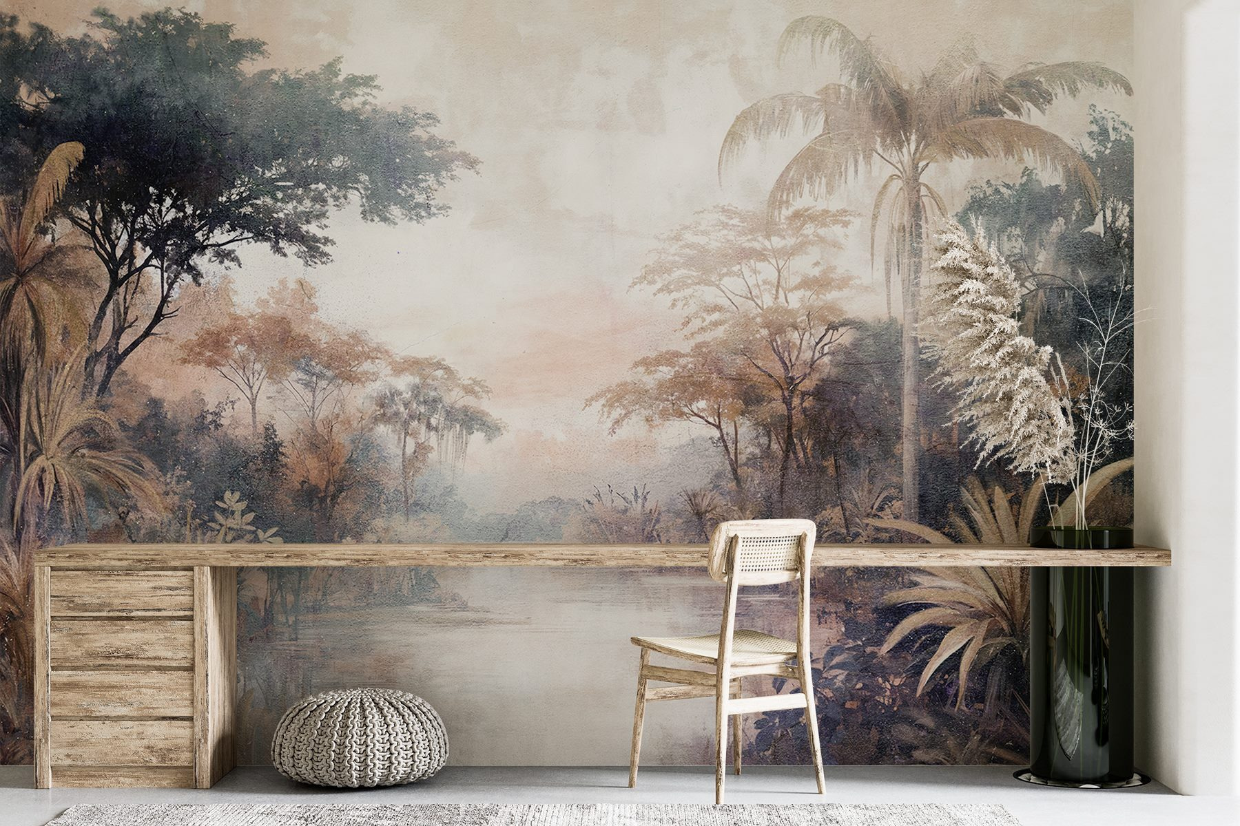 Premeňte svoj priestor na pokojné miesto na oddych s nástennou maľbou “Rieka so stromami a rastlinami”. Predstavte si, že vstúpite do zasnenej krajiny, kde sa bujná zeleň stretáva s pokojnou riekou – taká atmosféra! Táto fototapeta nie je len obkladom na stenu, je to ako mať kúsok prírody priamo doma. Jemné, zemité tóny nabádajú k pokoju, vďaka čomu sa každá lenivá nedeľa bude cítiť ako minidovolenka. Predstavte si útulný čitateľský kútik, túto nástennú maľbu ako pozadie, so šálkou teplého čaju v ruke. Starosti zrazu zmiznú a príroda vám bude šepkať sladké tóny. Ideálne pre tých, ktorí túžia po nádychu tropov bez spálenia od slnka. Nejde len o dekor – ide o pocit!