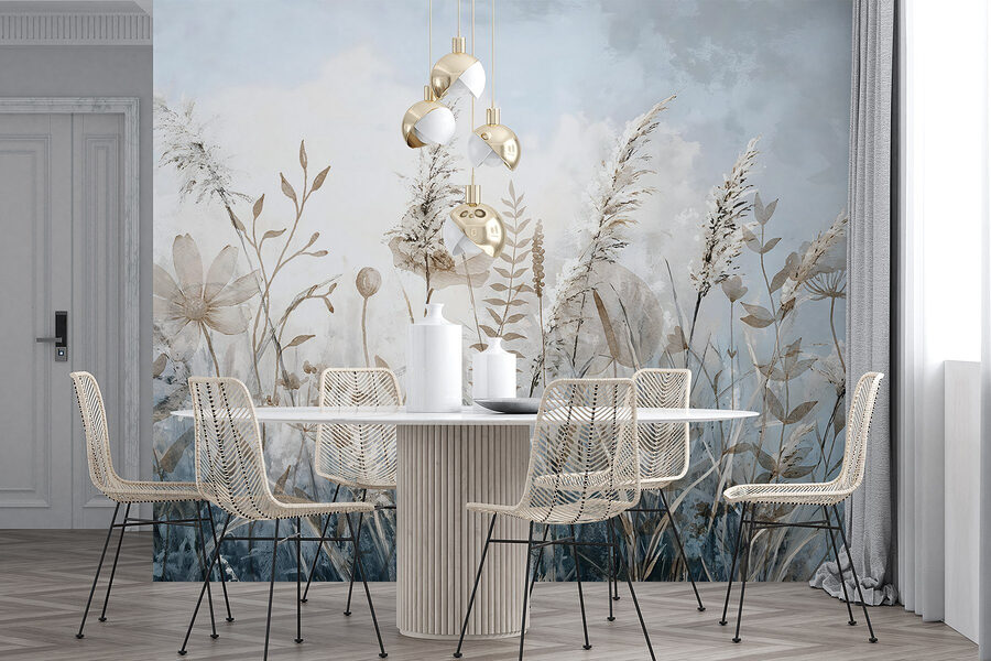 S touto očarujúcou nástennou maľbou kvetov a rastlín premeníte každú miestnosť na pokojné útočisko. Vnesie do interiéru jemný dotyk prírody, vďaka ktorému sa aj tie najšedivejšie dni budú cítiť o niečo jasnejšie. Predstavte si, že popíjate rannú kávu obklopení jemnými tónmi a rozmarnými tvarmi – hovoríme o zlepšení nálady! Jemné detaily vás vyzývajú, aby ste sa zastavili a ocenili krásu vonkajšieho prostredia. Táto nástenná maľba je ideálna na steny, ktoré potrebujú trochu lásky, a môže rozprúdiť rozhovory alebo sa jednoducho stať vaším útulným pozadím. Kto by povedal, že objatie prírody môže byť také ľahké?