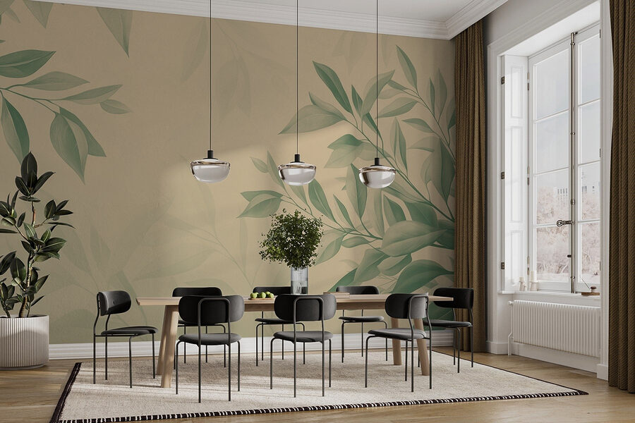 Premeňte každú miestnosť pomocou tejto úžasnej nástennej maľby s jemnými zelenými listami na neutrálnom pozadí. Predstavte si, že sa prebúdzate s jemným vánkom prírody priamo u vás doma – nie sú potrebné turistické topánky! Ide o vytvorenie pokojnej atmosféry. Táto nástenná maľba šepká pokoj, takže je ideálna do útulných obytných priestorov alebo do pokojného čitateľského kútika. Jemné odtiene krásne ladia s rôznymi farbami, takže je to ako mať v arzenáli dekorácií flexibilného priateľa. Vážne, nebolo by tu ešte lepšie schúliť sa s dobrou knihou? Prijmite tento botanický pôvab a cíťte sa omladene každý deň!