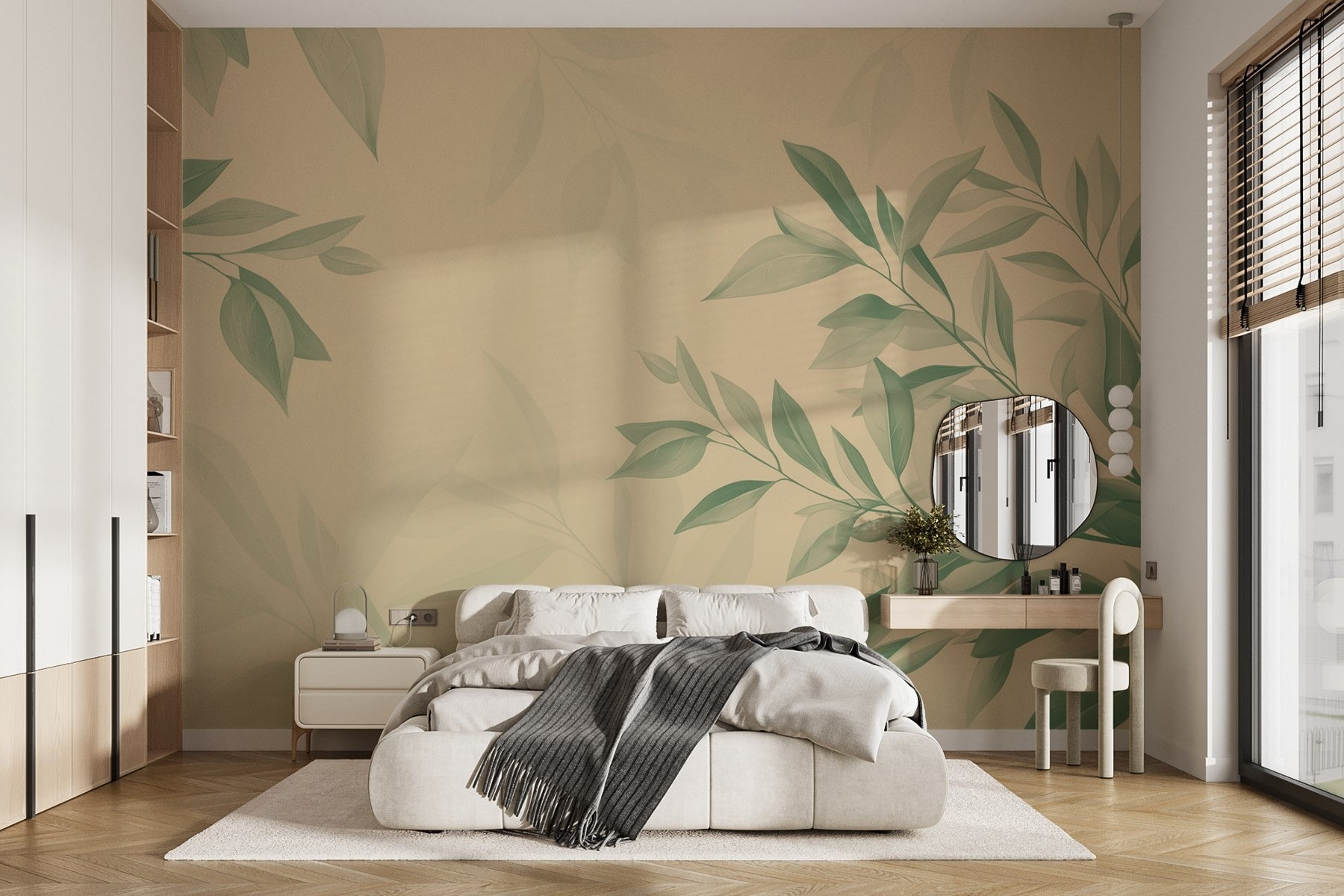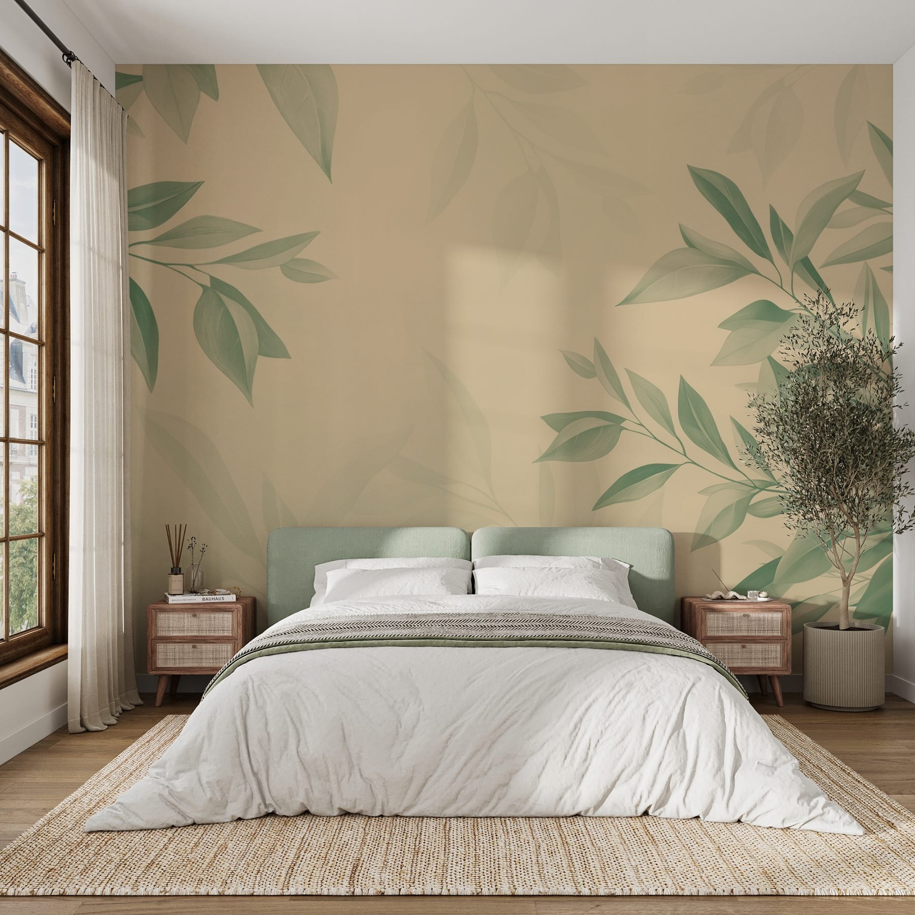 Premeňte každú miestnosť pomocou tejto úžasnej nástennej maľby s jemnými zelenými listami na neutrálnom pozadí. Predstavte si, že sa prebúdzate s jemným vánkom prírody priamo u vás doma – nie sú potrebné turistické topánky! Ide o vytvorenie pokojnej atmosféry. Táto nástenná maľba šepká pokoj, takže je ideálna do útulných obytných priestorov alebo do pokojného čitateľského kútika. Jemné odtiene krásne ladia s rôznymi farbami, takže je to ako mať v arzenáli dekorácií flexibilného priateľa. Vážne, nebolo by tu ešte lepšie schúliť sa s dobrou knihou? Prijmite tento botanický pôvab a cíťte sa omladene každý deň!