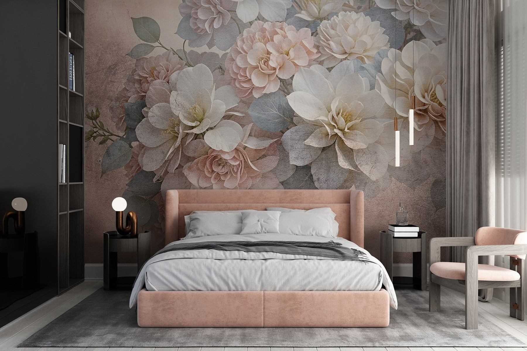 Predstavte si, že vstúpite do miestnosti vyzdobenej “nástennými maľbami skupiny bielych a ružových kvetov”. Je to ako zahaľovať steny do jemného objatia elegancie. Jemná zmes jemnej bielej a ružovej farby prináša do interiéru nádych prírody a vytvára veselú atmosféru. Predstavte si útulný kútik, v ktorom popíjate kávu, obklopení týmito kvetmi – je to takmer, akoby vám šepkali sladké vtipy, aby vám rozjasnili deň. Každý kvet akoby pozýval do ovzdušia trochu romantiky, ktorá je ideálna na snívanie alebo tiché chvíle s dobrou knihou. Premeňte svoj priestor pomocou týchto úžasných kvetov a nechajte každý pohľad pôsobiť ako jarné kúzlo!
