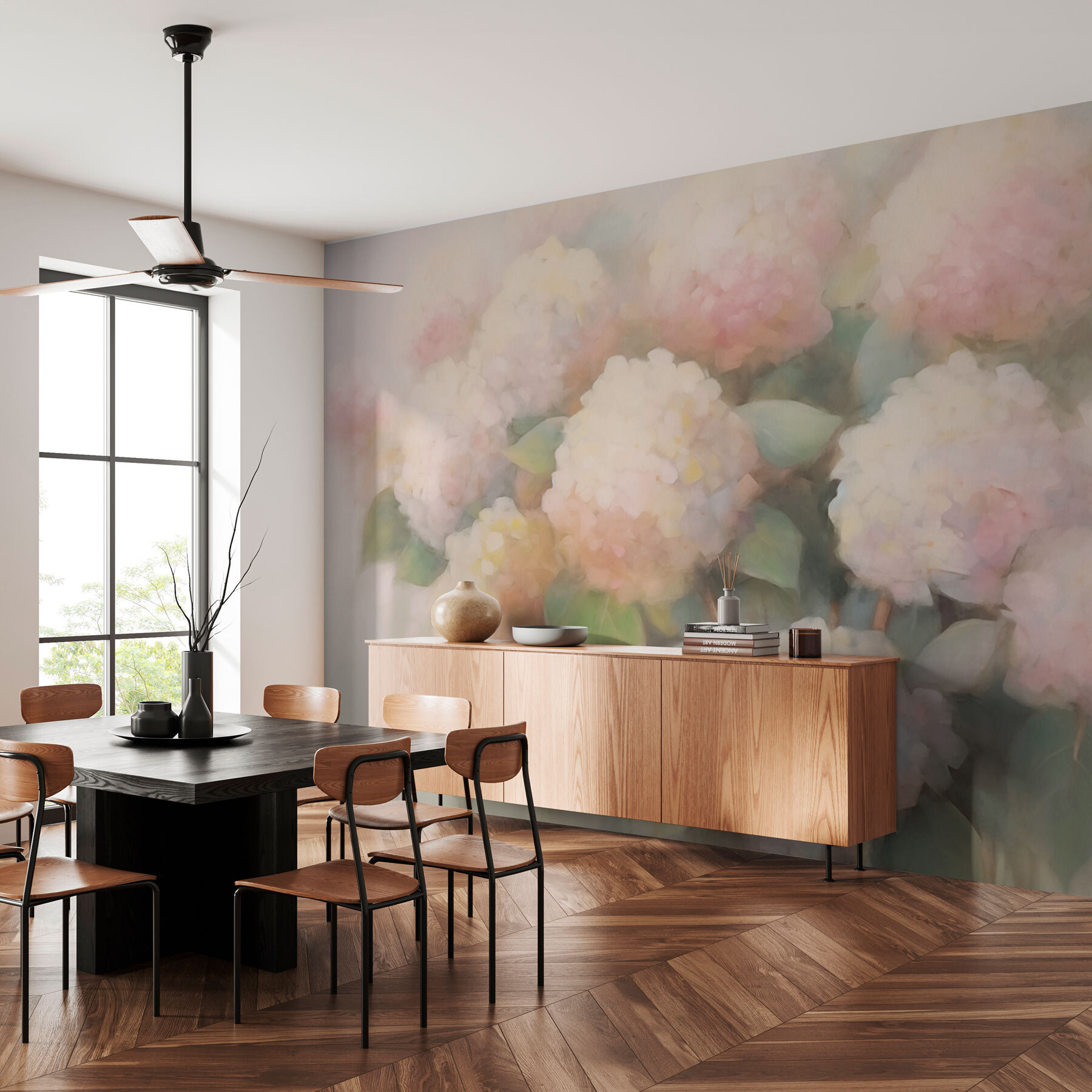 Oživte priestor touto očarujúcou nástennou maľbou kvetov na zasnenom bielom pozadí. Je to ako priniesť do interiéru jemný jarný vánok! Predstavte si, že idete okolo neho a zachytíte závan čerstvých kvetov – až na to, že nemáte alergie! Tieto kvety s jemnými odtieňmi ružovej a krémovej farby dodávajú jemný nádych, ktorý pôsobí prívetivo a je ideálny do útulnej obývačky alebo pokojnej spálne. Navyše sú vždy v sezóne, na rozdiel od tých chudobných vonkajších kvetov. Táto nástenná maľba nielen zdobí; pozýva k pokoju a dobrej nálade, vďaka čomu sa každý deň bude cítiť o niečo krajšie. Kto by to nechcel?