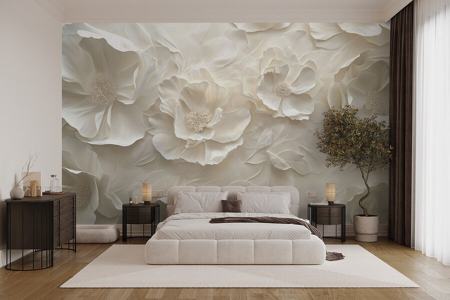 Premeňte akýkoľvek priestor pomocou tejto úžasnej tapety “Fototapety White Flower Wallpaper”. Predstavte si, že vstúpite do miestnosti zahalenej do jemného objatia nežných kvetov. Pivonky a ruže akoby šepkali čerstvé začiatky a pozývali do vášho domova teplo. Je to ako preniesť záhradu do interiéru, bez otravných chrobákov a potreby vody.