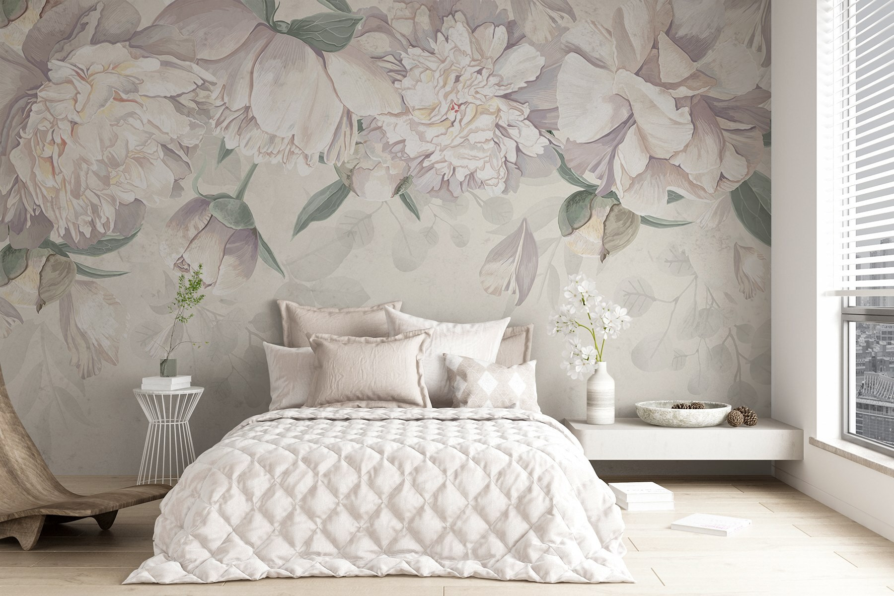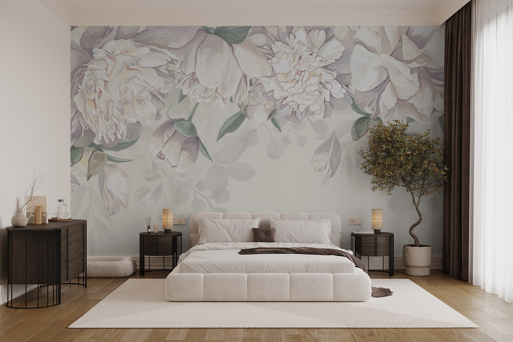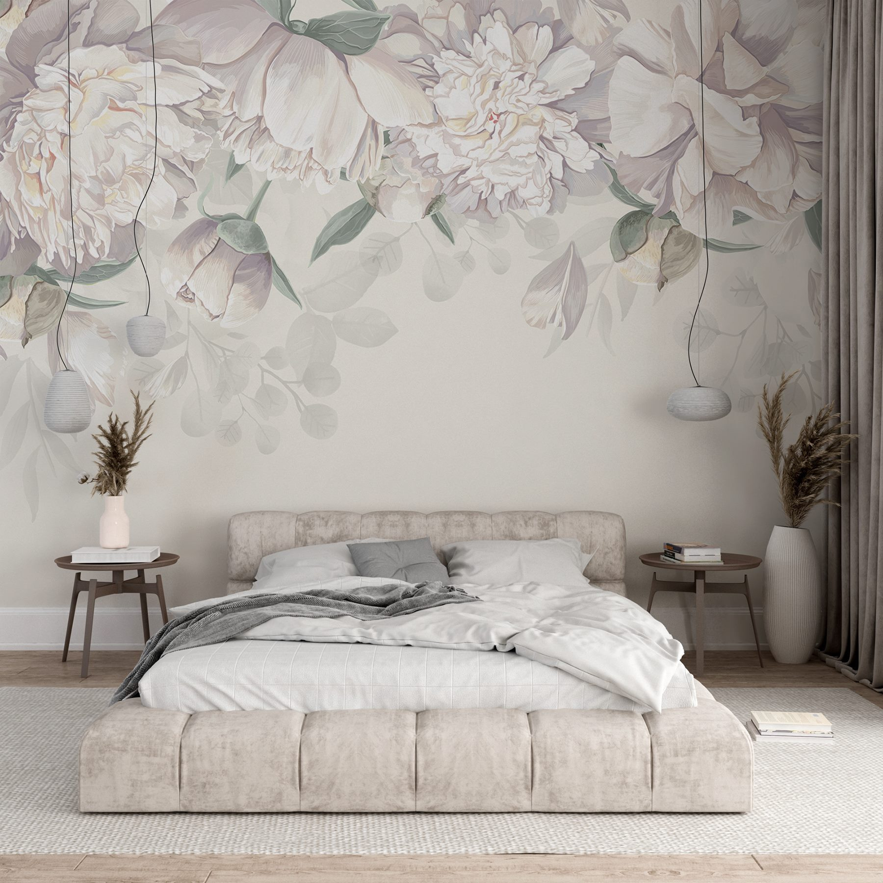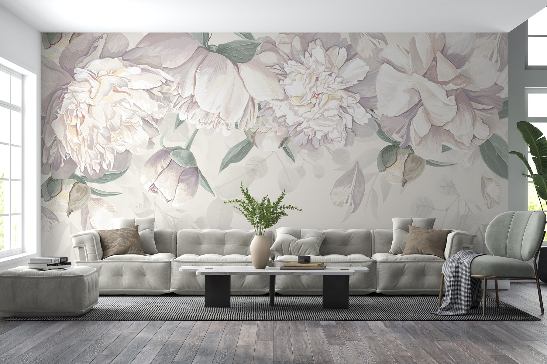 Premeňte akýkoľvek priestor na pokojnú oázu pomocou tejto úžasnej nástennej maľby s jemnými bielymi kvetmi a sviežimi zelenými listami. Predstavte si, že vojdete do miestnosti, kde na stenách šepká príroda – jemné pivonky elegantne kvitnú a vyzývajú vás, aby ste sa zhlboka nadýchli. Je to ako preniesť záhradu do interiéru, bez peľu! Táto nástenná maľba dokonale spája sofistikovanosť s nádychom rozmarnosti, vďaka čomu je úžasným pozadím pre príjemné rozhovory pri káve alebo možno živú večeru. Kto by sa pri pohľade na tieto kvety neusmieval? Každý pohľad je ako malý únik do pokoja. Navyše určite vyvolá rozhovory o obľúbených rastlinách alebo záhradných dobrodružstvách. Len sa zamyslite – každý okvetný lístok môže byť inšpiráciou pre príbeh!