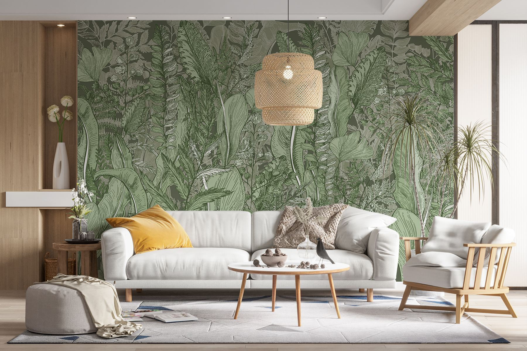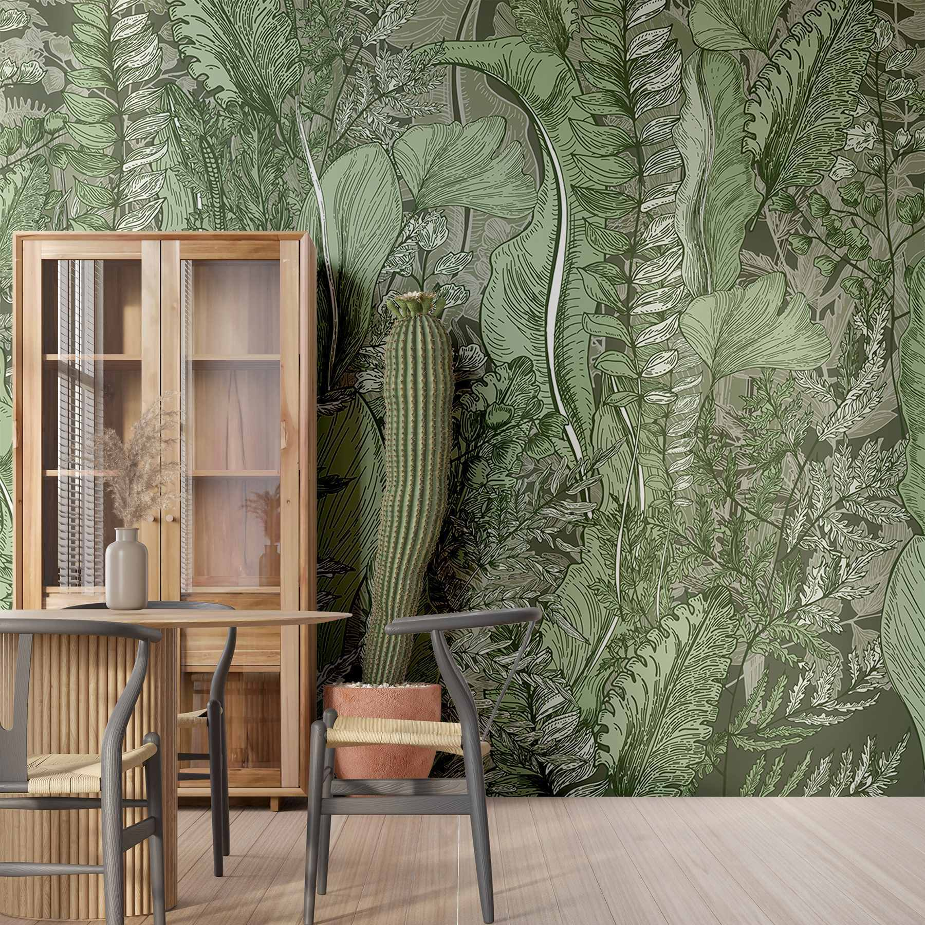 Premeňte akýkoľvek priestor na pokojnú oázu pomocou nástennej maľby “Bujná zeleň”. Je to ako prechádzka živým lesom bez toho, aby ste museli opustiť svoju izbu! Toto umelecké dielo, ktoré hýri zložitými listami a jemnými papradiami, pozýva do interiéru dotyk prírody. Predstavte si, že sa uvelebíte s dobrou knihou, obklopení touto upokojujúcou zeleňou – ideálnou na snívanie alebo oddych po dlhom dni. Navyše je to elegantné riešenie pre tých, ktorí by mohli mať problém s udržiavaním izbových rastlín pri živote (bez odsudzovania!). Nechajte upokojujúce tóny vdýchnuť život vašim stenám a bez námahy pozdvihnite svoju dekoratívnu hru.