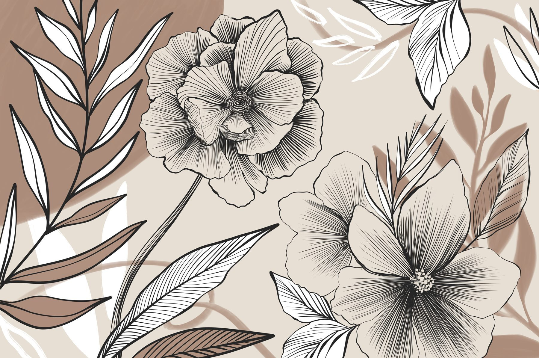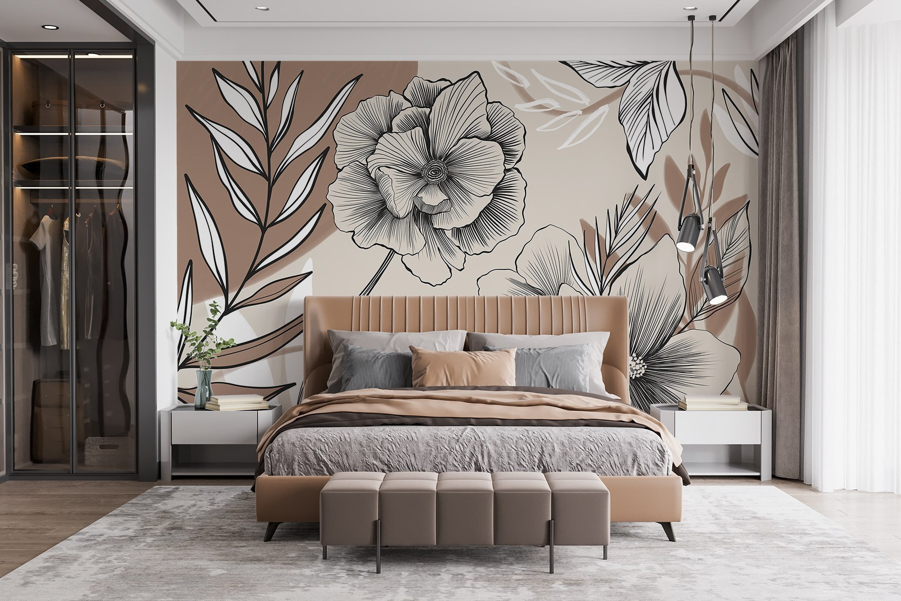 Premeňte svoj priestor pomocou nástennej maľby “Kvetinová elegancia v čiernej a bielej”. Predstavte si, že vstúpite do miestnosti, kde po stenách hravo tancujú úžasné kvety. Výrazný kontrast čiernych a bielych kvetov v spojení s jemnými zemitými tónmi vytvára elegantnú atmosféru, ktorá pôsobí moderne a zároveň útulne. Je to ako preniesť záhradu do interiéru bez zalievania!