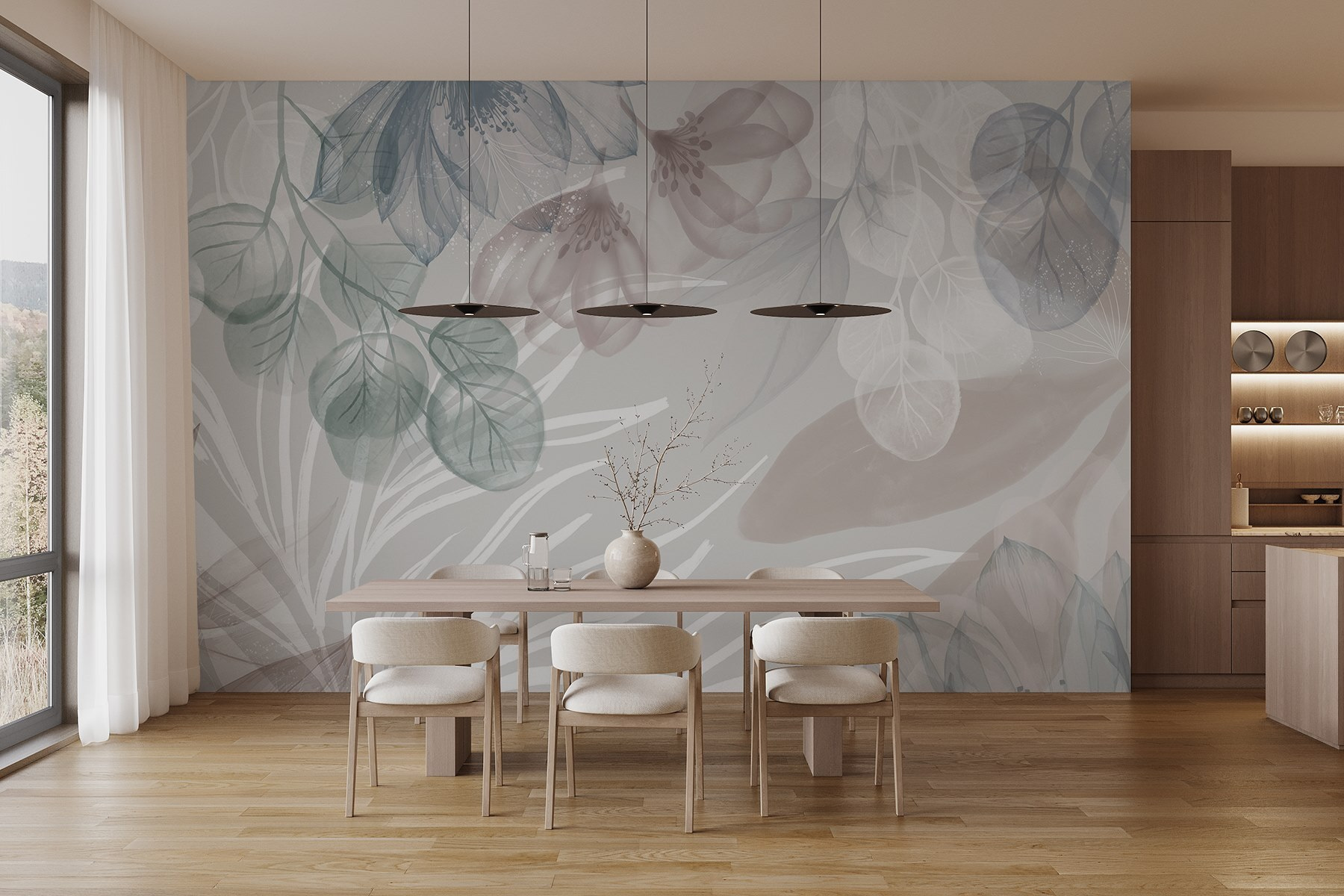 Premeňte svoj priestor pomocou tejto očarujúcej nástennej maľby “Jemné kvety a mäkké textúry”. Predstavte si, že vstúpite do miestnosti, kde po stene tancujú nežné okvetné lístky a jemne šepkajú tajomstvá prírody. Jemné farby navodzujú pokojnú náladu – ideálnu na relaxáciu po dlhom dni. Predstavte si, ako popíjate čaj, zatiaľ čo kvety akoby sa kolísali spolu s vami. Je to ako mať záhradu v interiéri, bez otravného peľu! Či už v útulnom čitateľskom kútiku alebo v bezstarostnej obývačke, táto nástenná maľba vyzýva k dotyku elegancie a tepla, vďaka čomu sa každý pohľad stane malou chvíľkou radosti. Vážne, kto by sa pri tom neusmieval?