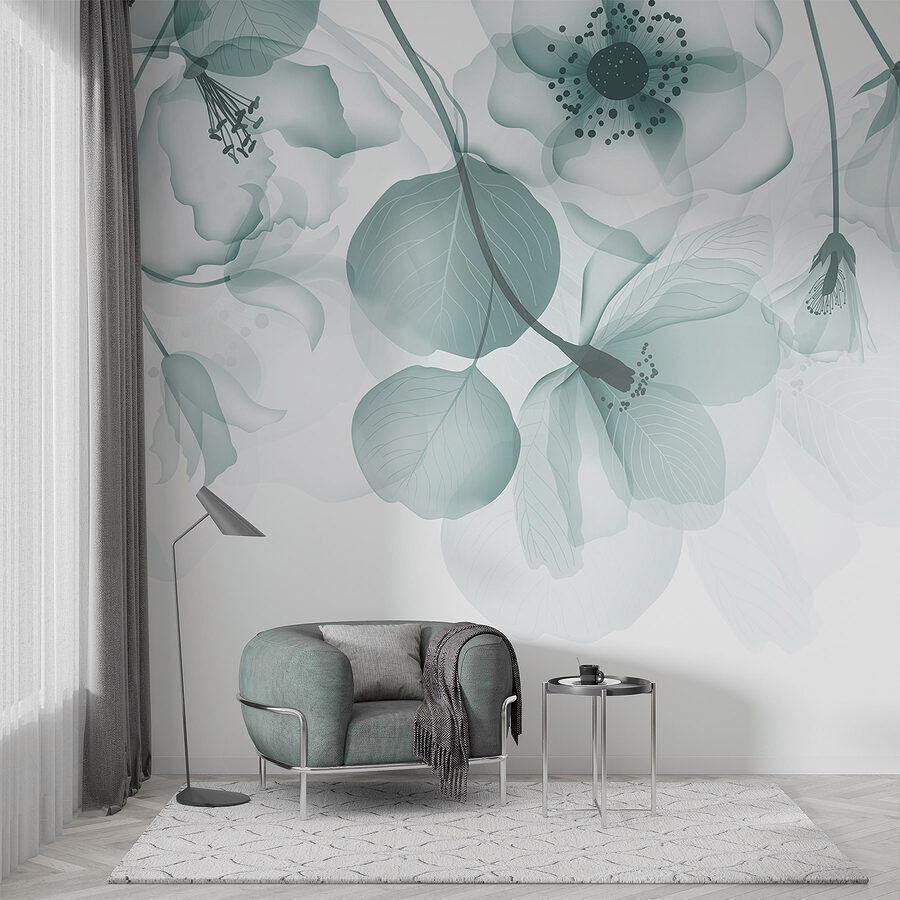 Premeňte svoj priestor pomocou očarujúcej nástennej maľby “Priehľadné kvety s listami”. Je to ako preniesť pokojnú japonskú záhradu priamo k vám domov – bez otravných záhradných trpaslíkov. Predstavte si, že sa zobudíte a privítajú vás jemné okvetné lístky a jemne sa kývajúce listy, všetko v jemných akvarelových odtieňoch. Zmes zelenej a bielej dodáva nádych pokoja, ktorý je ideálny pre útulný čitateľský kútik alebo zasnenú spálňu. Každý pohľad je ako malý závan čerstvého vzduchu. Či už hostíte priateľov, alebo si len užívate lenivú nedeľu, táto nástenná maľba navodí tú správnu náladu. Kto by povedal, že stena môže priniesť taký pokoj?