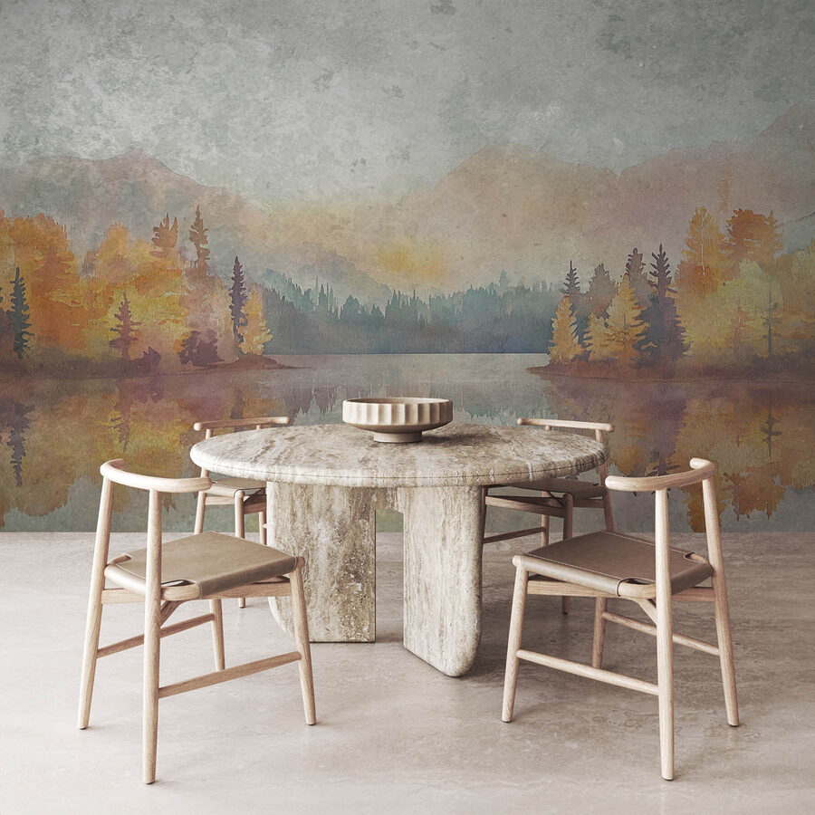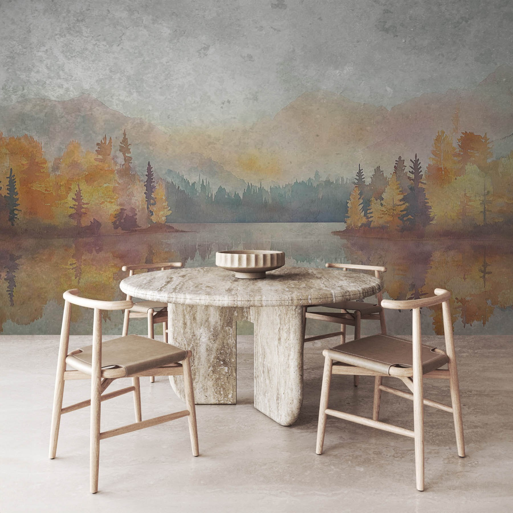 Premeňte svoj priestor na útulné útočisko pomocou tejto úžasnej akvarelovej maľby pokojného jazera obklopeného sviežimi stromami a majestátnymi horami. Predstavte si, ako sa nechávate unášať s kávou v ruke, keď vás teplé farby a jemné odrazy prenesú do vášho obľúbeného vonkajšieho úkrytu. Je to ako pozvať si kúsok prírody priamo do svojich stien. Táto nástenná maľba, ktorá je ideálna do obývačky alebo do pokojnej kancelárie, dodáva svojimi jemnými odtieňmi hĺbku a šarm. Nie je to len dekorácia; je to každodenná pripomienka dýchania, oddychu a možno aj trochu snívania. Kto by nechcel mať vo svojom živote nádych pokoja?
