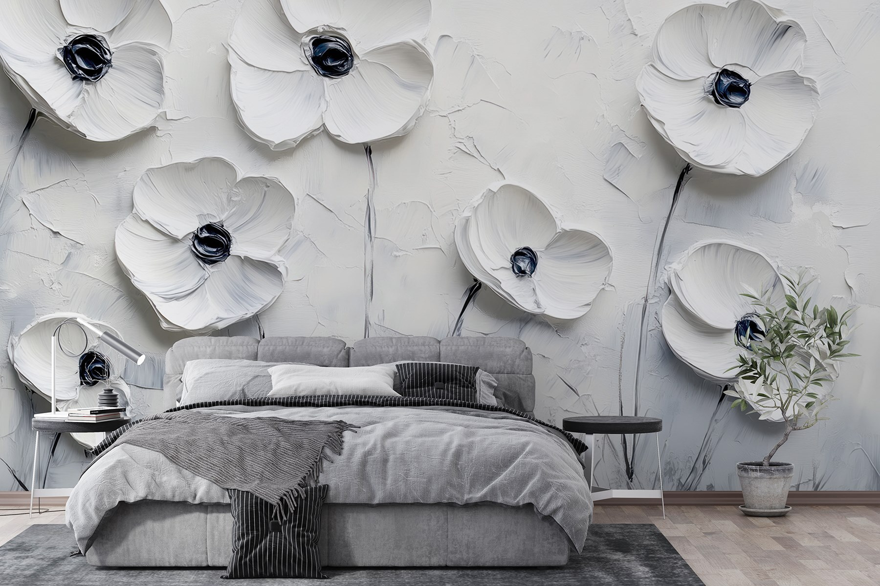 Premeňte každú miestnosť pomocou tejto úžasnej nástennej maľby s elegantnými bielymi kvetmi, ktoré akoby rozkvitali priamo zo steny. Predstavte si, že vstúpite do svojho priestoru a privítajú vás tieto pivonky a ruže, ktoré vám okamžite zlepšia náladu. Jemné textúry a nežné farby vytvárajú pokojné pozadie, ideálne na popíjanie kávy počas lenivých rán alebo na hostenie priateľov na večeri. Je to ako preniesť záhradu do interiéru, bez otravného peľu! Táto nástenná maľba dodá akémukoľvek kútu šarm a rozmar, takže každý pohľad bude ako malý únik do prírody. Tak do toho, nech vaše steny spievajú!