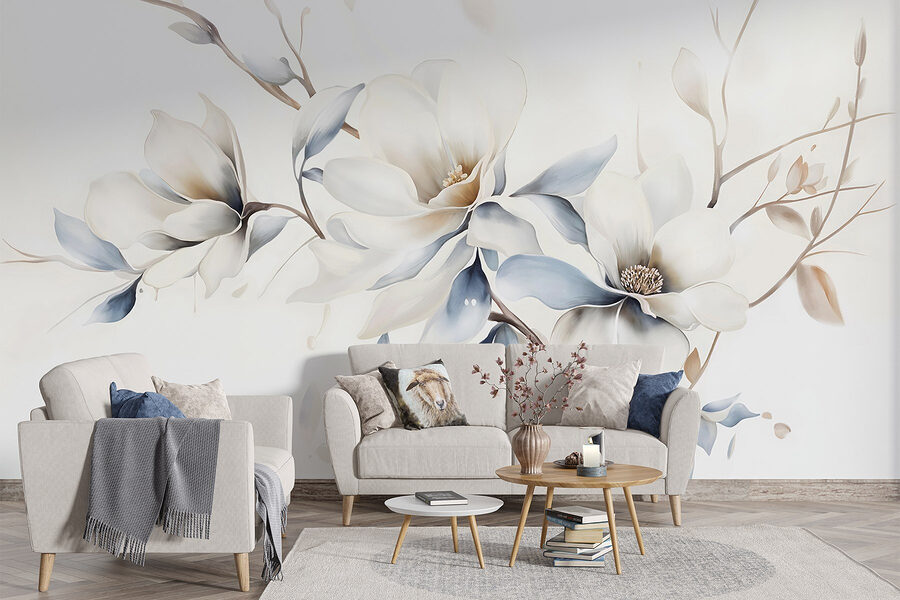 Premeňte svoj priestor na pokojnú oázu pomocou tejto výraznej nástennej maľby s jemnými kvetmi na mäkkom bielom pozadí. Je to ako jemný jarný vánok priamo vo vašej obývačke, ktorý je pripravený zlepšiť náladu každý deň v týždni. Predstavte si, ako popíjate rannú kávu, dovnútra prúdi slnečné svetlo a tie krásne kvety všetko oživujú. Akvarelový štýl dodáva zasnený nádych – takmer akoby kvety boli na pokraji rozkvitnutia priamo zo steny. Táto nástenná maľba, ktorá je ideálna na oživenie spálne alebo zvýraznenie útulného čitateľského kútika, pozýva do vášho domova teplo, eleganciu a kvapku prírody. Kto by povedal, že steny môžu prinášať takú radosť?