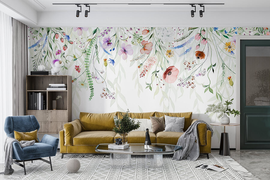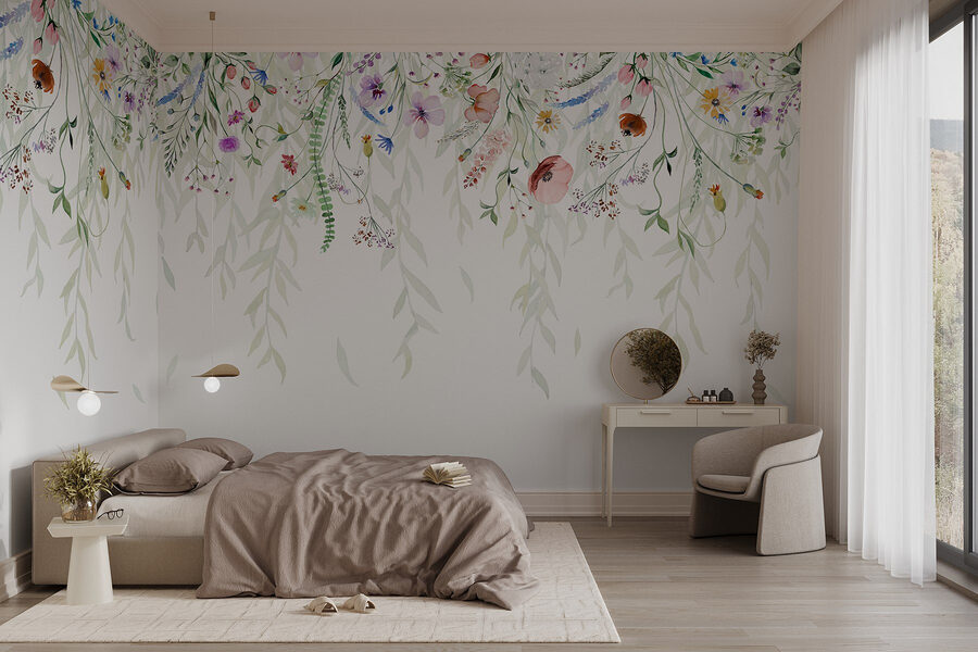 Premeňte svoje steny pomocou tejto úžasnej akvarelovej maľby s očarujúcou kaskádou kvetov a listov. Je to ako vniesť dotyk prírody priamo do interiéru – predstavte si lenivé nedeľné rána s útulnou šálkou kávy, obklopené jemnými kvetmi. Jemné farby a splývavý dizajn vytvárajú upokojujúcu atmosféru, ktorá je ideálna pre každú miestnosť túžiacu po troche osobitosti. Predstavte si, že hostíte priateľov a sledujete, ako sa im rozžiaria oči, keď obdivujú toto nádherné pozadie. Je to jednoduchý spôsob, ako svojmu priestoru dodať sviežosť a príťažlivosť. Navyše, kto by nemal rád trochu kvetinového kúzla?