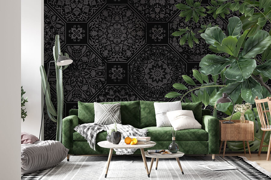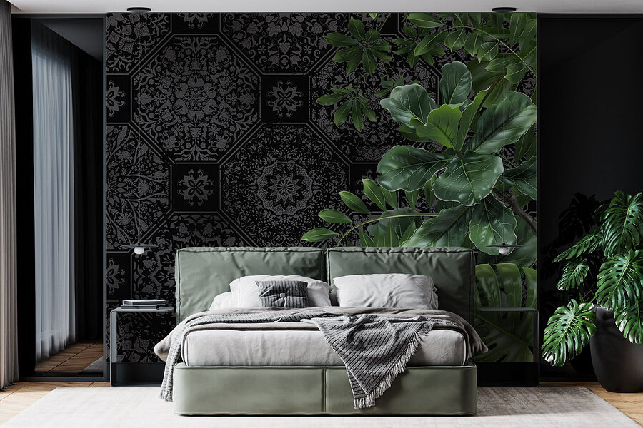 Premeňte svoj priestor pomocou tejto úžasnej čiernej a sivej tapety so sviežimi zelenými listami. Predstavte si, že vstúpite do miestnosti, v ktorej sa budete cítiť ako na tropickom úteku! Zložité geometrické vzory poskytujú fantastické pozadie, zatiaľ čo tieto živé listy prinášajú spŕšku života a energie. Budete sa cítiť, akoby ste boli obklopení prírodou – samozrejme, bez komárov! Táto nástenná maľba, ktorá je ideálna pre útulný čitateľský kútik alebo výraznú stenu, bez námahy spája eleganciu s nádychom divočiny. Ste pripravení na poriadne štýlové vibrácie? Vaše steny sa vám poďakujú!