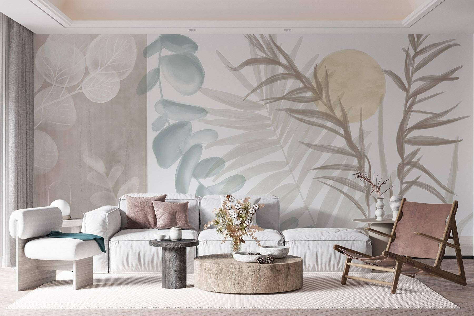 Premeňte akúkoľvek miestnosť na oázu pokoja s “Jemnými odtieňmi krásy prírody”. Táto nástenná maľba zachytáva upokojujúcu esenciu prírody s jemnými zelenými a zemitými tónmi, ktoré našepkávajú relaxáciu. Predstavte si, ako popíjate rannú kávu a tieto jemné akvarelové listy tancujú po stene a pozývajú dovnútra malý kúsok prírody. Ideálny do útulnej obývačky alebo pokojnej domácej kancelárie, prináša pocit pokoja, ktorý možno v dnešnom rušnom svete ťažko nájsť. Je to ako váš osobný les – bez hmyzu a zablatených topánok! Doprajte svojim stenám objatie nežnej krásy.