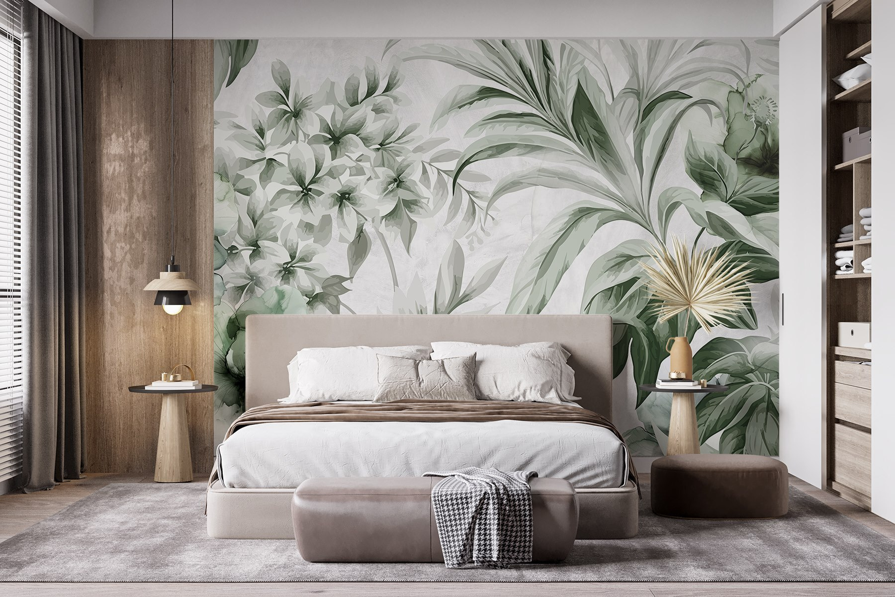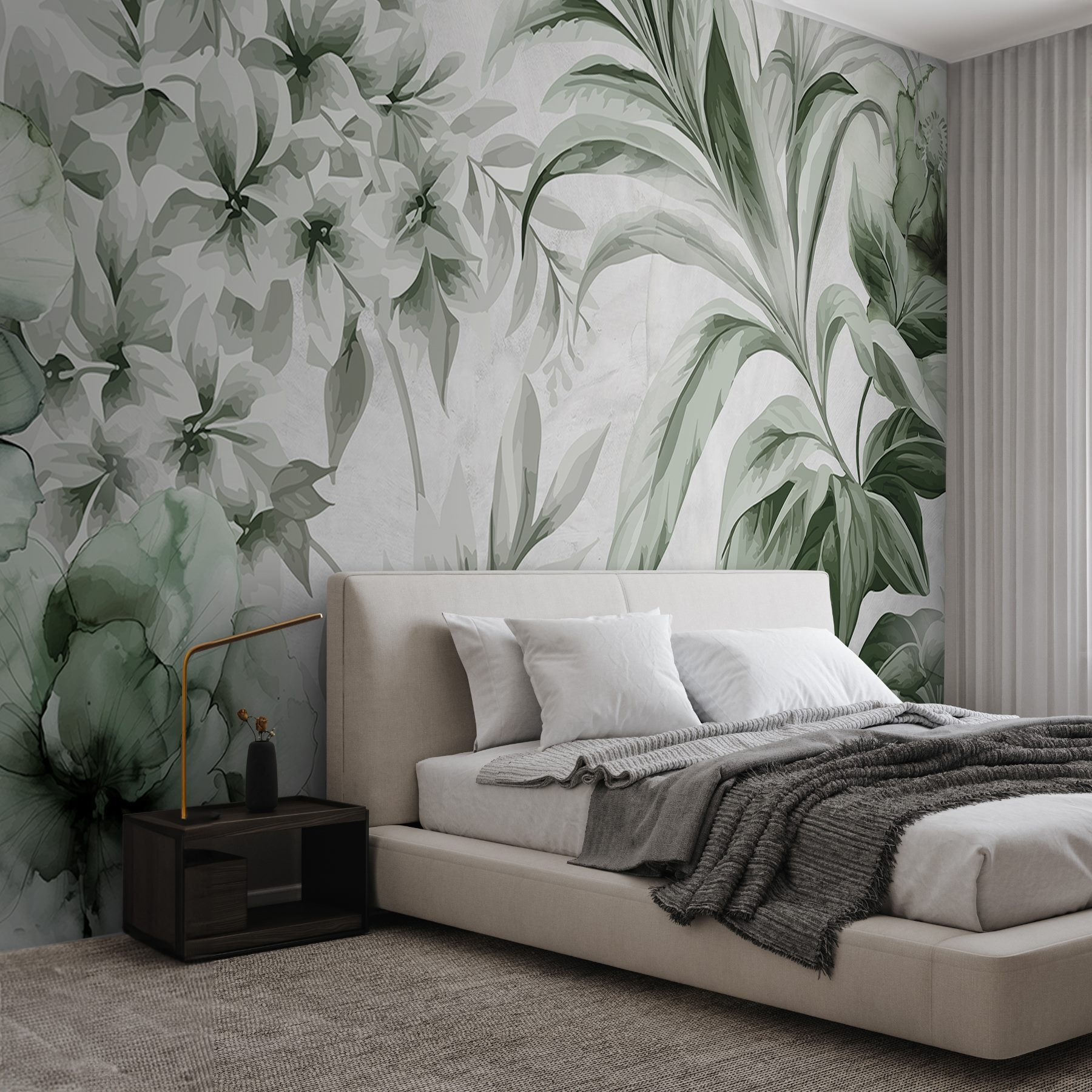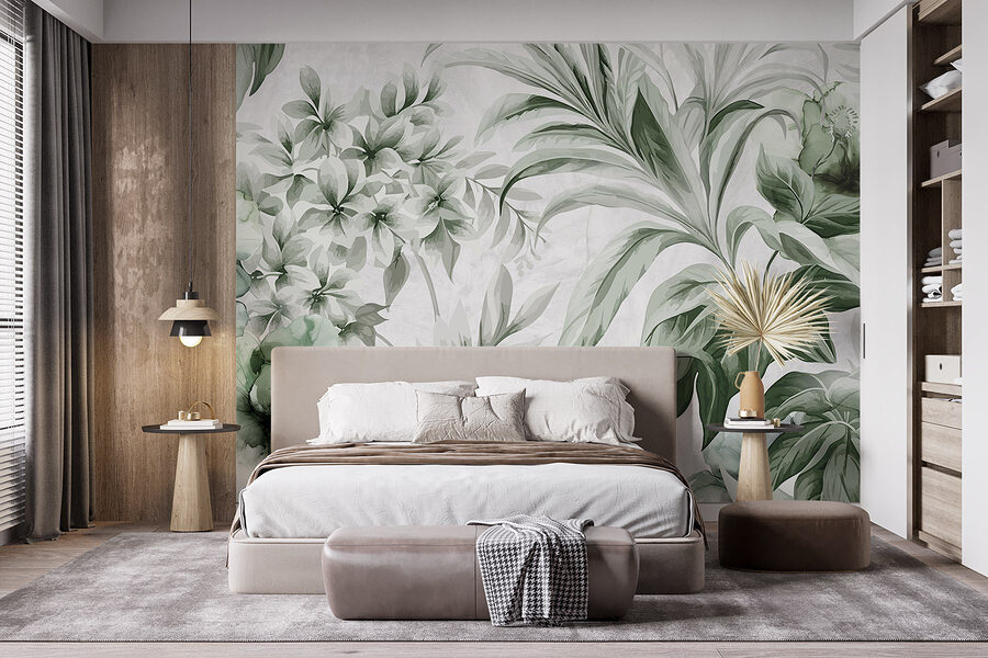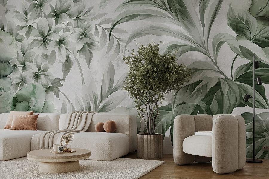 Premeňte akýkoľvek priestor pomocou nástennej maľby “Jemné odtiene botanickej elegancie”. Predstavte si to: leňošenie vo vašej obývačke, obklopené jemnou zeleňou a mäkkými kvetinovými potlačami, ktoré šepkajú pokoj. Je to ako preniesť pokojnú záhradu do interiéru – bez problémov s alergiami. Jemná paleta zelene a decentných kvetov vytvára pokojnú atmosféru, ktorá je ideálna na oddych po hektickom dni alebo na zdieľanie milých chvíľ s priateľmi. Možno sa vám dokonca bude snívať o lenivých popoludniach na slnkom zaliatom poli. Je to viac ako stena; je to atmosféra – útulná pozvánka na relaxáciu a ponorenie sa do krásy prírody priamo u vás doma. Len si predstavte tie komplimenty od hostí, keď vojdú dnu!