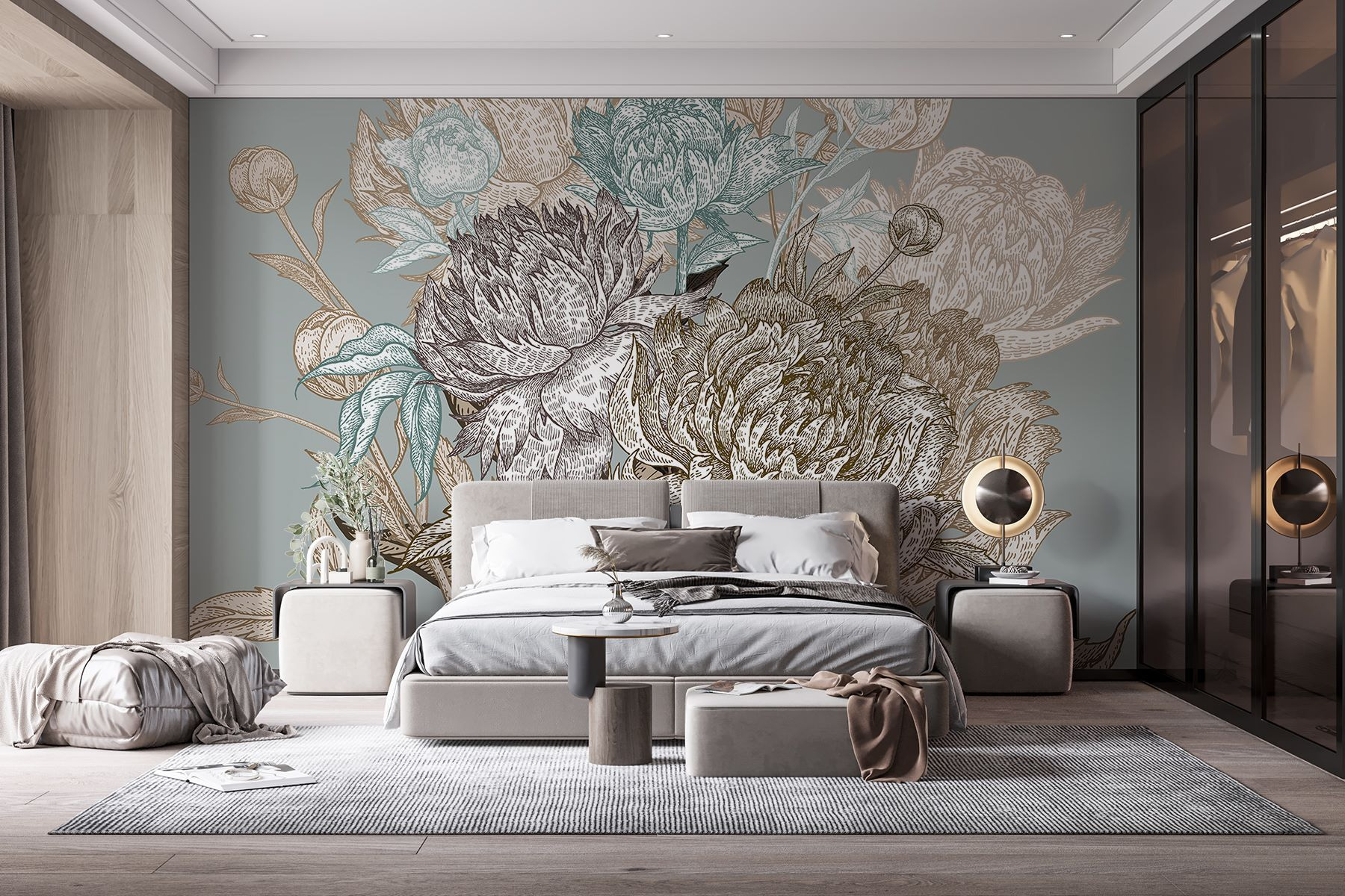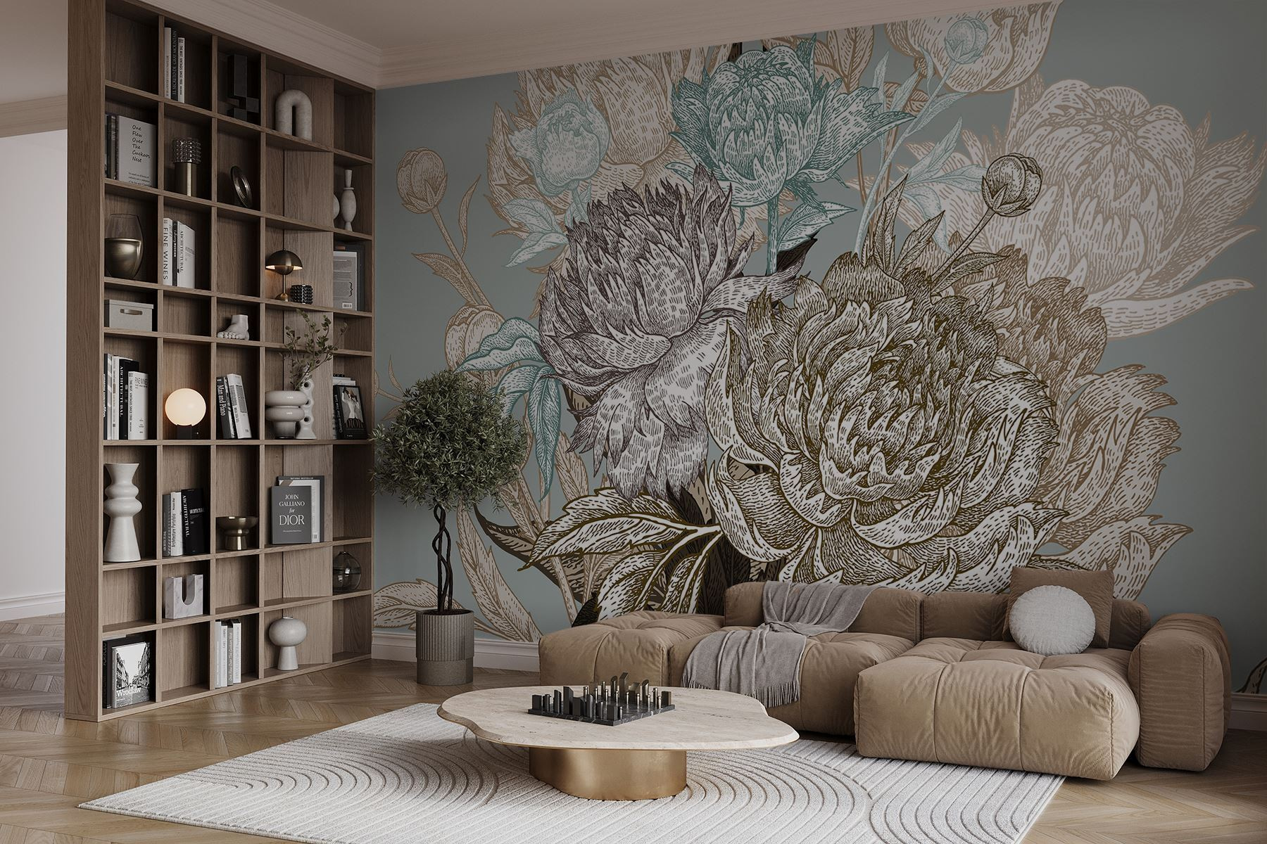 Premeňte nudnú stenu na útulnú záhradnú oázu s touto úžasnou kvetinovou fototapetou! Vďaka jemným, delikátnym odtieňom navodzuje pokojnú atmosféru, vďaka ktorej možno zabudnete, že ste v interiéri. Predstavte si, ako sa ponoríte do svojho obľúbeného kresla so šálkou čaju v ruke, obklopení elegantnými pivonkami a nežnými kvetmi – kto by povedal, že kvety môžu priniesť taký pokoj? Tento dizajn šepká nadčasovú krásu a bez námahy sa kombinuje s akýmkoľvek štýlom interiéru. Je ideálny pre každého, kto sníva o tomto čarovnom zákutí, je to ako mať doma tajnú záhradu. Už je tu jar?