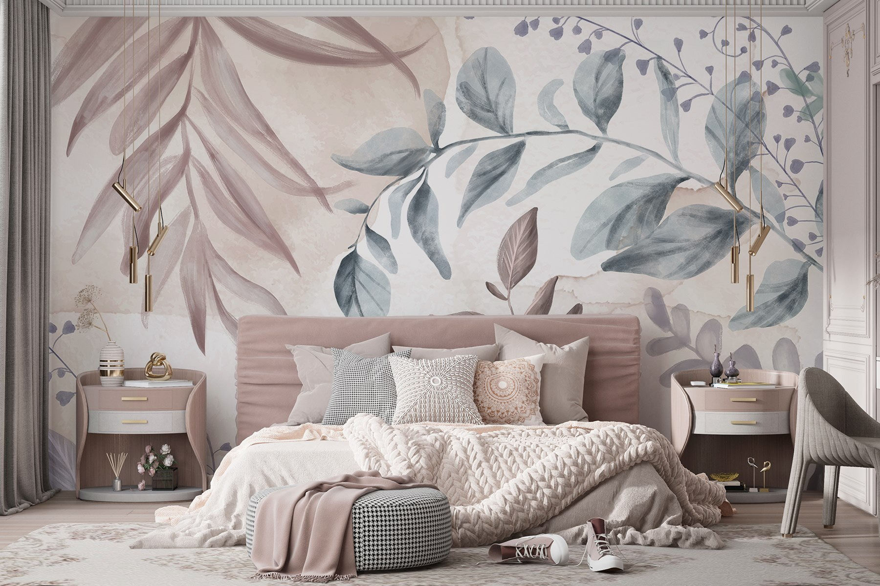 Premeňte svoj priestor pomocou nástennej maľby “Jemné lístie v jemných pastelových odtieňoch”, v ktorej sa stretáva pôvab prírody so snovými farbami. Predstavte si, že sa prebúdzate do zelených listov a jemných ružových tónov, ktoré šepkajú relaxáciu. Je to ako preniesť pokojnú záhradu do interiéru, bez otravného hmyzu. Ideálna pre útulný čitateľský kútik alebo stenu, ktorá potrebuje trochu lásky – táto nástenná maľba dodáva nádych pokoja a elegancie bez toho, aby kričala o pozornosť.