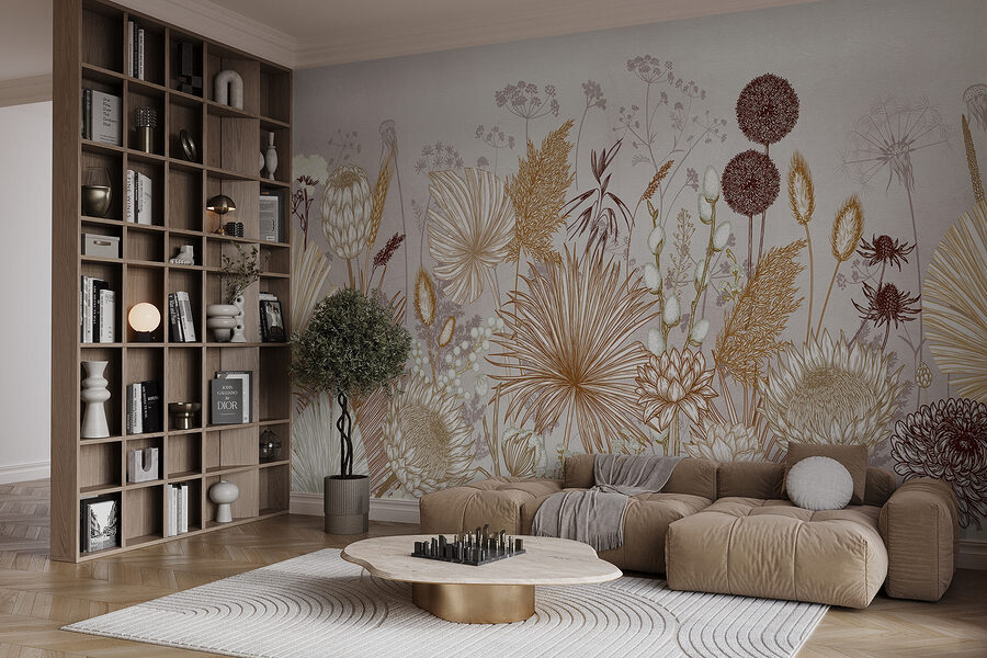 Premeňte akúkoľvek stenu na rozkvitnutý raj s touto úžasnou nástennou maľbou “Jemné kvetinové umenie na displeji”. Predstavte si, že vstúpite do slnkom zaliatej záhrady plnej jemne načrtnutých kvetov, ktoré tancujú vo vašom priestore. Jemné zemité tóny vytvárajú pokojnú atmosféru, ktorá je ideálna pre chladný kútik alebo aj pre ten malý kútik, ktorý si priam žiada trochu lásky. Je to ako preniesť prírodu do interiéru, bez kýchania! Predstavte si útulné večery pri popíjaní čaju s týmito krásnymi kvetmi, ktoré ponúkajú sladké pozadie. Dodajte svojmu životu kúsok pokoja – pretože kto nepotrebuje trochu viac kvetinovej sily?