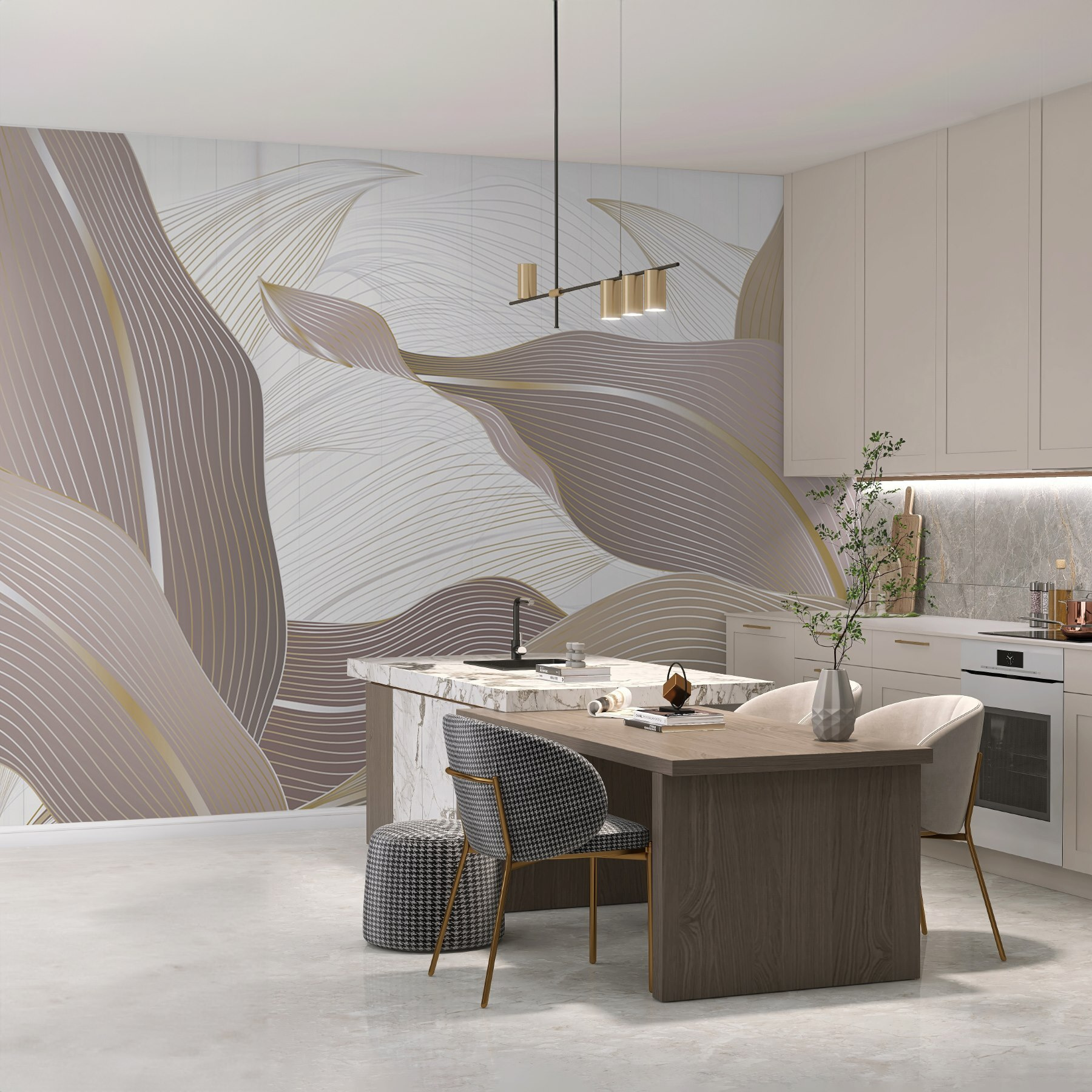 Premeňte svoj priestor pomocou nástennej maľby “Plynúce línie v jemných odtieňoch”, ktorá šepká eleganciu. Predstavte si, že vojdete do miestnosti, kde upokojujúce línie tancujú po stenách a vytvárajú pokojný balet farieb. Je to ako jemné objatie pre vaše oči – ideálne na oddych po dlhom dni alebo na rozprúdenie inšpiratívnych rozhovorov s priateľmi. Táto nástenná maľba nie je len pekná, ale vdýchne život každému prostrediu, dodá mu teplo a nádych rozmarnosti. Kto by sa nechcel cítiť, akoby vstúpil do zasnenej krajiny priamo u vás doma? Vezmite si šálku čaju, pohodlne sa usaďte a ponorte sa do tejto pohody!