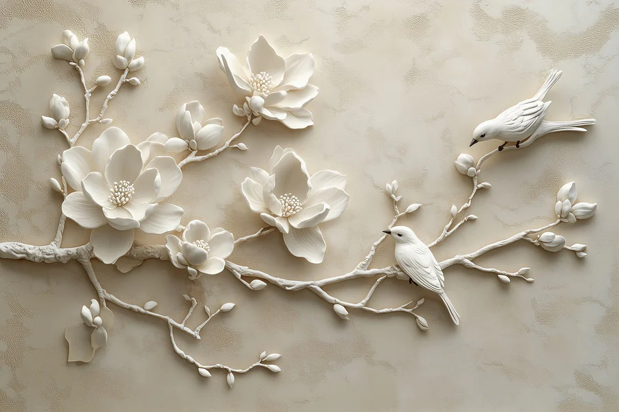 Predstavte si, že vstúpite do miestnosti, kde príroda ticho šepká cez steny. Táto nástenná maľba s jemnými bielymi vtákmi sediacimi na rozvetvenej vetve ozdobenej kvetmi to dokáže. Jemná elegancia kvetov navodzuje pocit pokoja – ideálna do útulného čitateľského kútika alebo pokojnej spálne. Je to ako vniesť do interiéru nádych jari, bez alergie! Je niečo rozmarné na tom, ako si tie vtáčiky navzájom čvirikajú tajomstvá. Pocítite, ako vás obklopí pokoj, keď táto nástenná maľba premení váš priestor na zasnené útočisko. Ideálna pre tých, ktorí oceňujú krásu prírody bez neporiadnej údržby. Hovoríme o výhre pre obe strany!