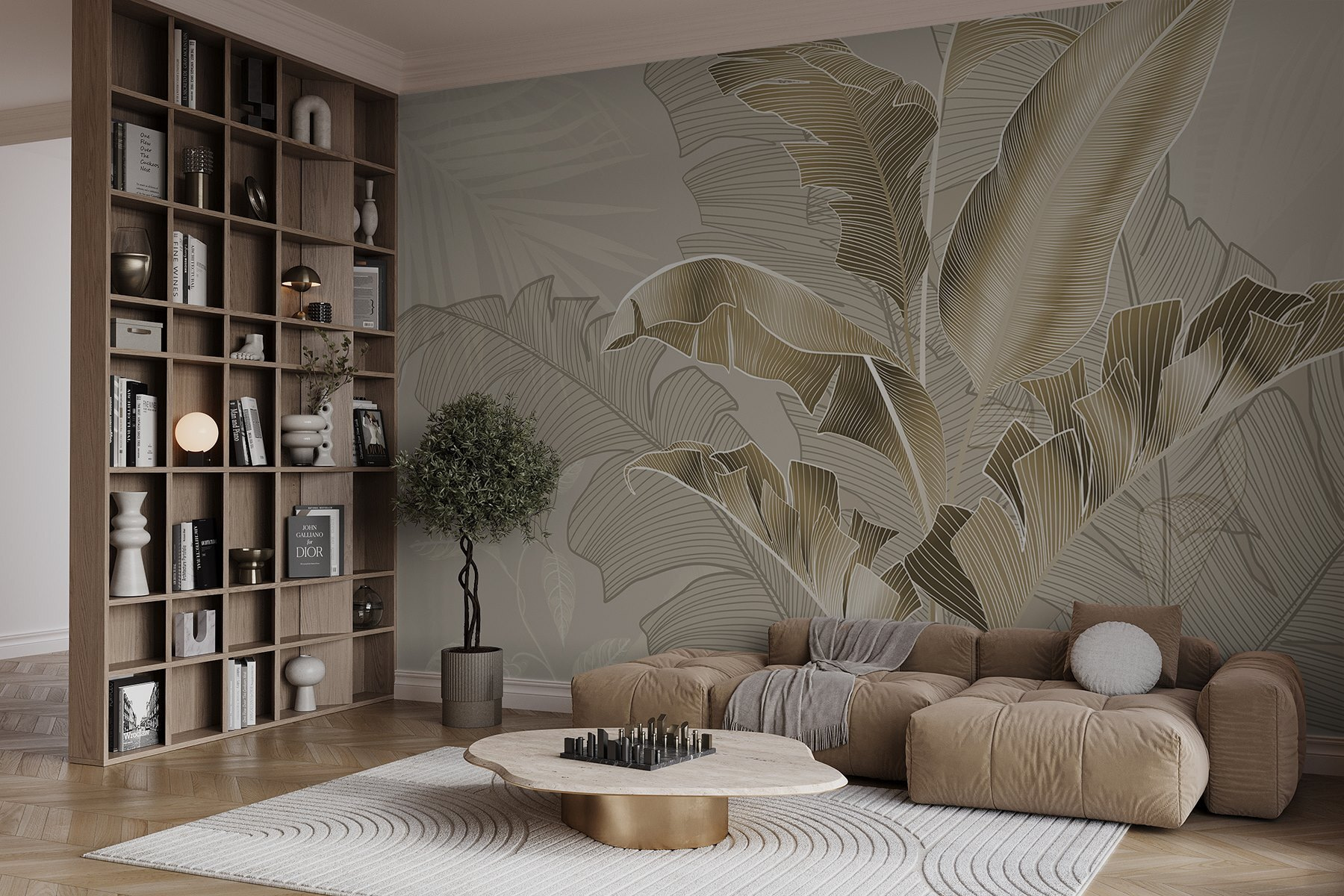 Imagine stepping into a serene jungle where elegance meets nature. This wall mural, “Elegant Leaves in Soft Tones,” invites a touch of tropical flair right into the heart of your home. It’s like having a little piece of paradise—no passport needed! The gentle hues and delicate leaf designs create a calming vibe, perfect for a cozy reading nook or a chic living room.