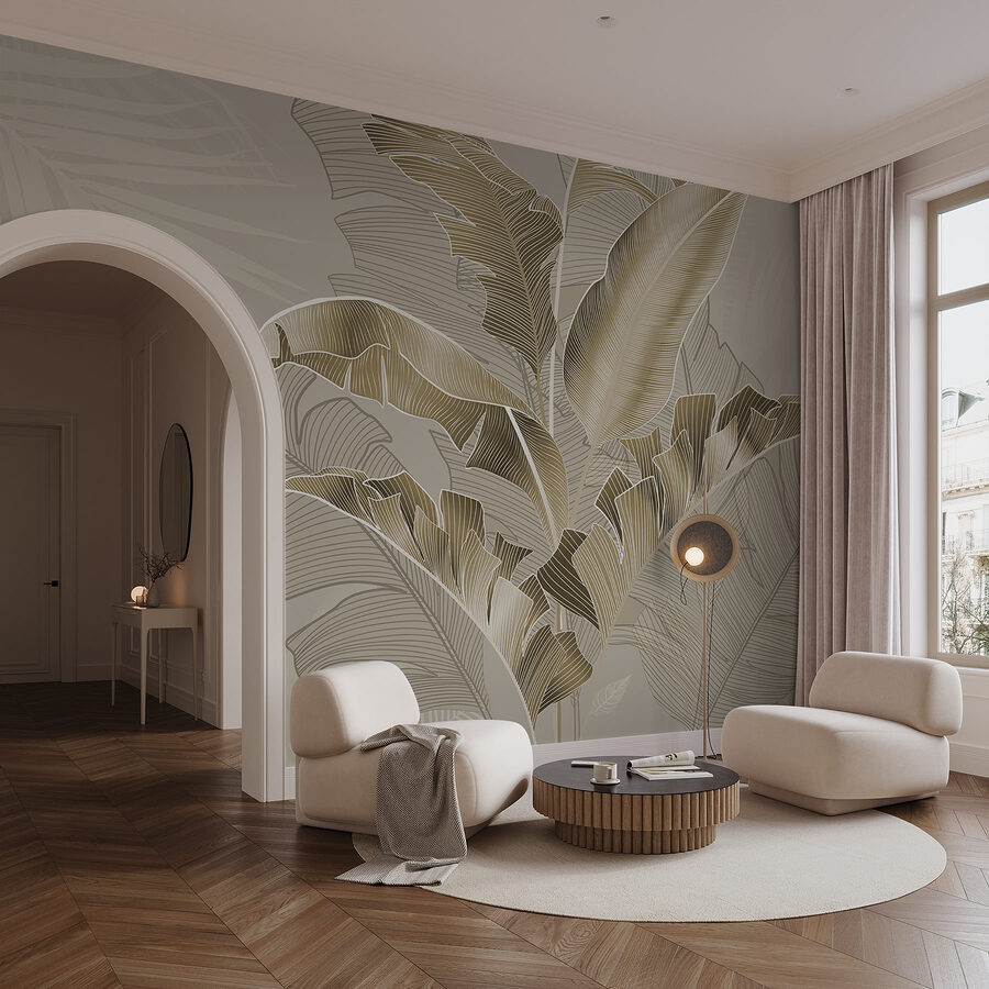 Predstavte si, že vstúpite do pokojnej džungle, kde sa elegancia spája s prírodou. Táto nástenná maľba „Elegantné listy v jemných tónoch“ vnesie do vášho domova nádych tropickej atmosféry. Je to ako mať kúsok raja – bez potreby pasu! Jemné odtiene a delikátne vzory listov vytvárajú upokojujúcu atmosféru, ideálnu pre útulný kútik na čítanie alebo elegantnú obývačku.