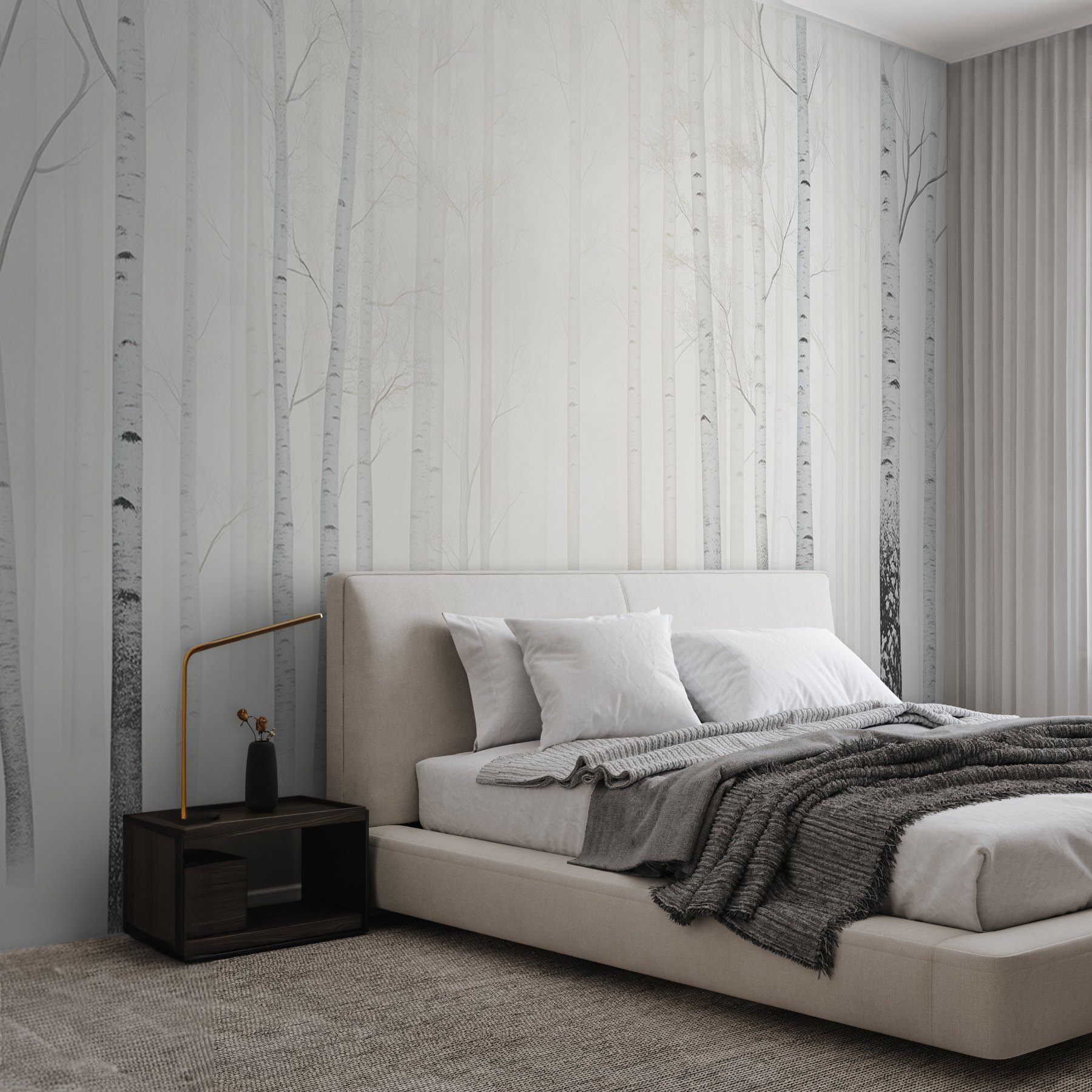 Premeňte svoj priestor na pokojnú zimnú krajinu s touto nástennou maľbou so skupinou stromov v zasneženom lese. Predstavte si, že sa prebúdzate do upokojujúcej scény s brezami, ktorých štíhle kmene stoja vysoko a hrdo na mäkkom zasneženom pozadí. Je to ako preniesť si kúsok prírody do interiéru – nie je potrebné odhŕňať sneh! Táto nástenná maľba šepká pokoj, takže je ideálna pre útulné zákutia alebo pokojnú spálňu. Len si predstavte, ako sa schúlite do klbka s horúcim nápojom, mäkkými prikrývkami a jemným tichom padajúceho snehu vonku. Dokonalý únik priamo u vás doma!