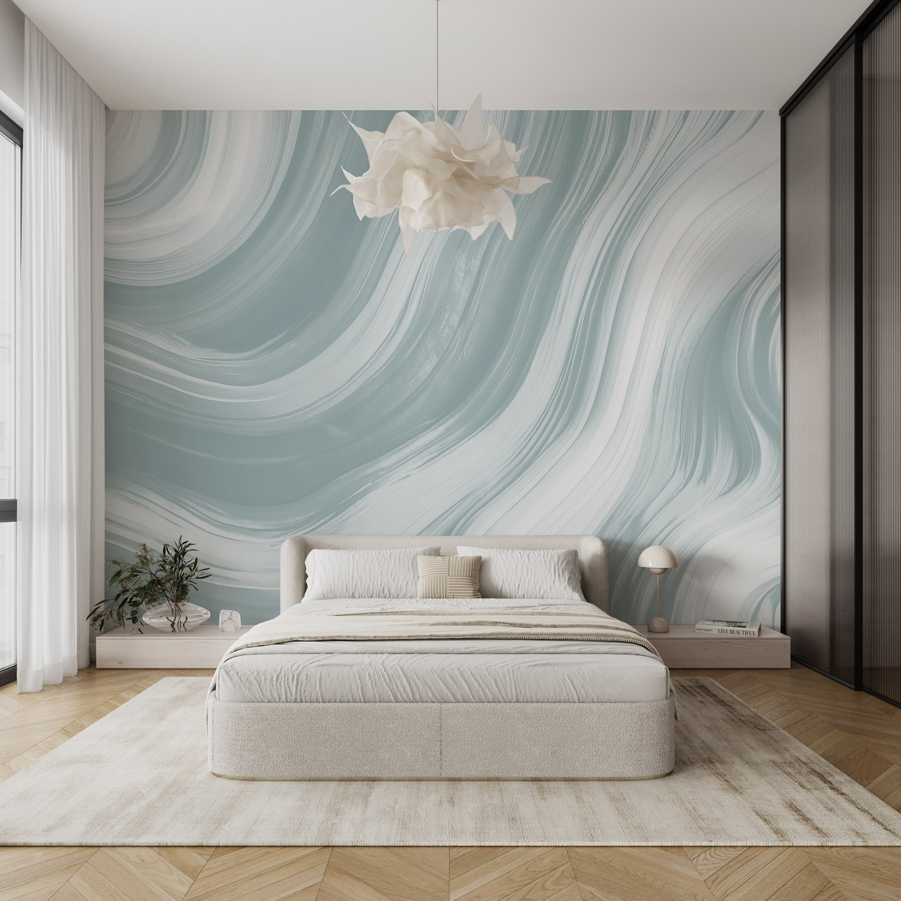 Transform any room with this stunning wall mural featuring enchanting white and grey wavy lines. It’s like a gentle breeze of creativity sweeping across your space, inviting calm and serenity to your life. Perfect for a cozy reading nook or a vibrant living room, this design adds a dreamy touch that feels both modern and timeless. Imagine curling up with a good book, surrounded by these soft waves, and feeling your worries drift away. Plus, it’s sure to spark conversation—just wait for your friends to ask where you found such a unique piece!