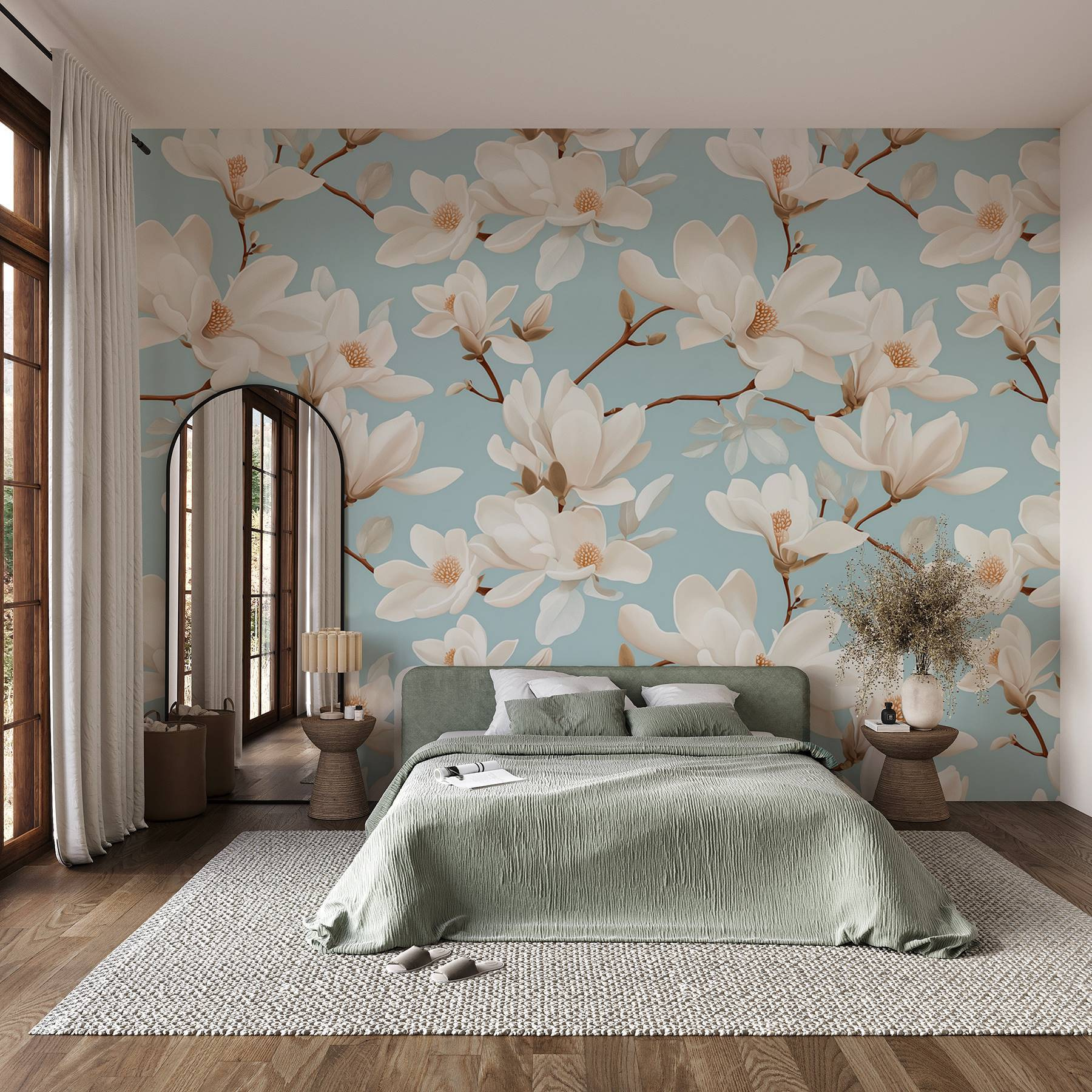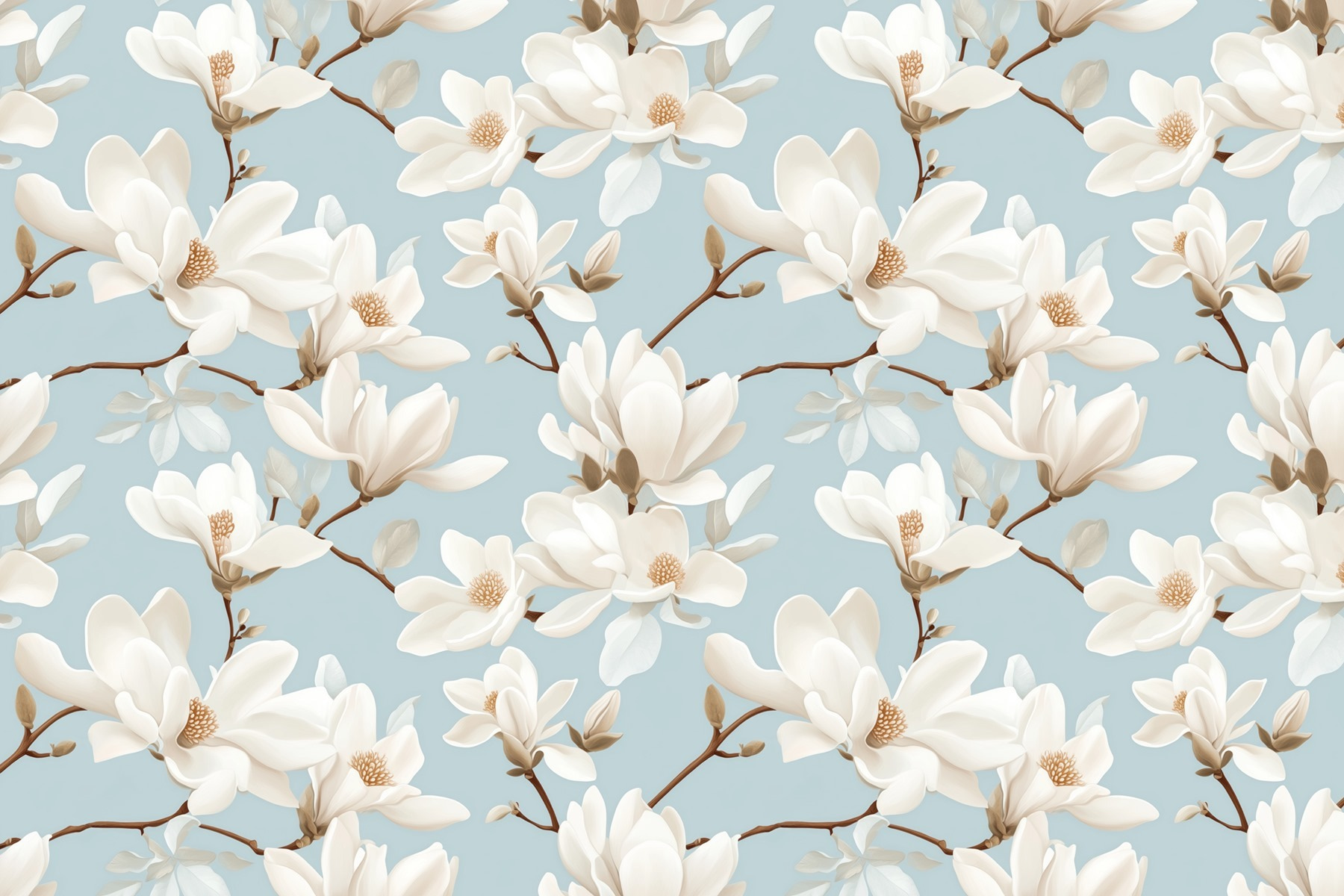 Transform your space with the stunning “Wall Murals Pattern of White Flowers.” Imagine stepping into a room where graceful magnolias bloom against a soothing sky blue backdrop. It’s like having spring in your home all year long! The delicate petals and soft colors create a calming vibe—perfect for unwinding after a long day or curling up with a good book. Friends will walk in and think you’ve secreted away to a lush garden! Plus, it’s a reminder that beauty can be just a wall away. Who knew home decor could feel so refreshing and cheerful?