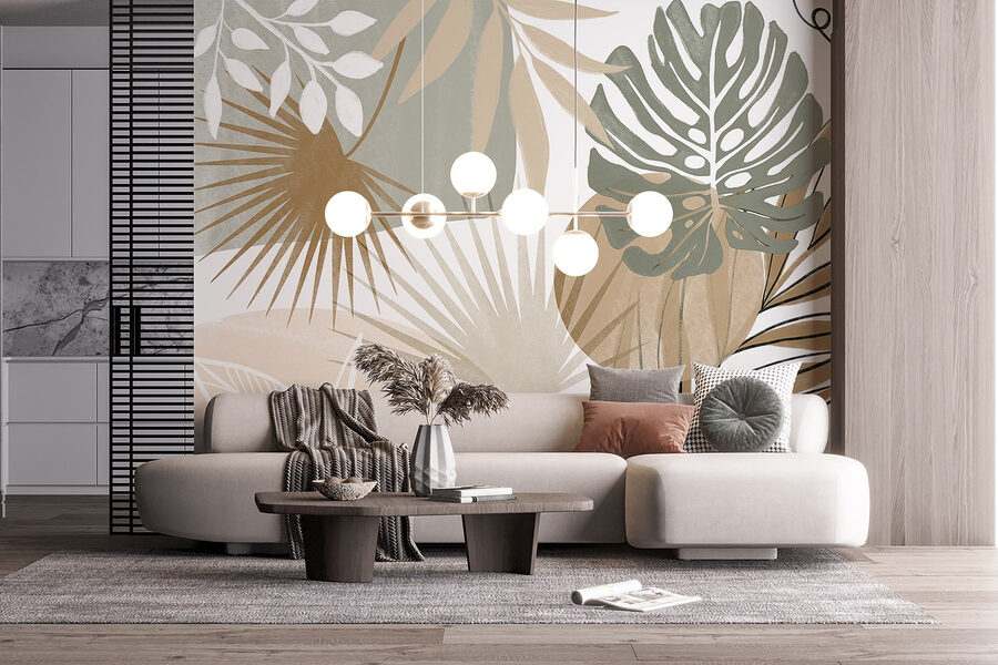 Premeňte obyčajnú stenu na živú únikovú zónu s „nástennými maľbami Natural Hues and Tropical Vibes“. Táto nástenná maľba žiarí snovými, jemnými farbami, ktoré doslova kričia „vitajte v raji“. Predstavte si, ako popíjate kokosový nápoj (alebo kávu, bez predsudkov) a oddychujete v tropickej oáze priamo vo vašej obývačke. Ukludňujúca paleta zelených a zemitých tónov nielen upokojuje zmysly, ale aj okamžite zútulňuje priestor. Je to ako pozvať kúsok prírody dovnútra, bez strašidelných chrobákov! Ideálne pre dni, keď je snívanie na mieste. A kto by nechcel, aby jeho priatelia vošli a povedali: „Wow, toto miesto je plné života“? Tak neváhajte, nechajte túto tapetu hovoriť za vás a pripravte scénu pre všetky tie útulné večery, ktoré vás čakajú.