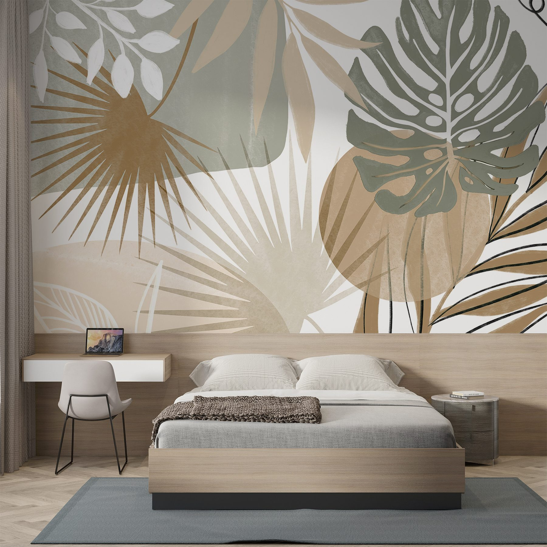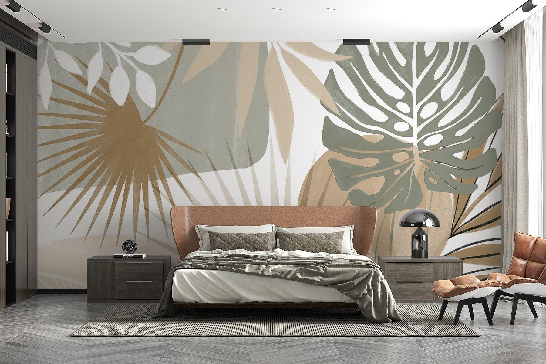 Premeňte obyčajnú stenu na živú únikovú zónu s „nástennými maľbami Natural Hues and Tropical Vibes“. Táto nástenná maľba žiarí snovými, jemnými farbami, ktoré doslova kričia „vitajte v raji“. Predstavte si, ako popíjate kokosový nápoj (alebo kávu, bez predsudkov) a oddychujete v tropickej oáze priamo vo vašej obývačke. Ukludňujúca paleta zelených a zemitých tónov nielen upokojuje zmysly, ale aj okamžite zútulňuje priestor. Je to ako pozvať kúsok prírody dovnútra, bez strašidelných chrobákov! Ideálne pre dni, keď je snívanie na mieste. A kto by nechcel, aby jeho priatelia vošli a povedali: „Wow, toto miesto je plné života“? Tak neváhajte, nechajte túto tapetu hovoriť za vás a pripravte scénu pre všetky tie útulné večery, ktoré vás čakajú.