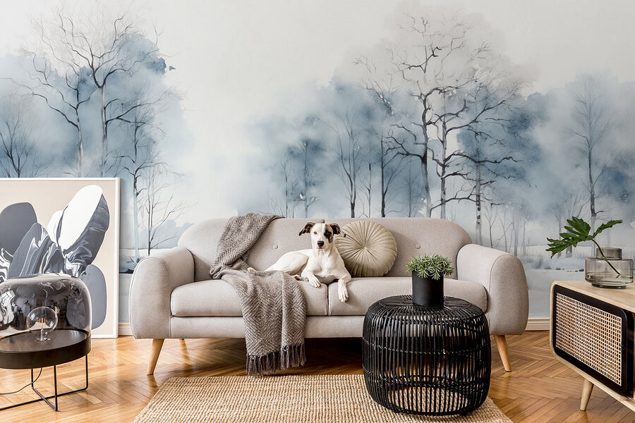 Premeňte akúkoľvek stenu na pokojné útočisko s touto očarujúcou nástennou maľbou zasneženého poľa posiateho stromami. Predstavte si to: v chladnom večeri si pohodlne sadnete s knihou, zatiaľ čo táto pokojná scéna obklopuje váš priestor. Jemné odtiene modrej a bielej vytvárajú upokojujúcu atmosféru, ktorá je ideálna na relaxáciu alebo dokonca na tiché rozjímanie. Je to ako priniesť si kúsok zimnej mágie dovnútra, bez studených prstov na nohách! Či už ste milovníkom prírody alebo len hľadáte spôsob, ako naštartovať konverzáciu, táto nástenná maľba vás vyzýva, aby ste sa zastavili, nadýchli a vychutnali si kúsok pokoja priamo u vás doma.
