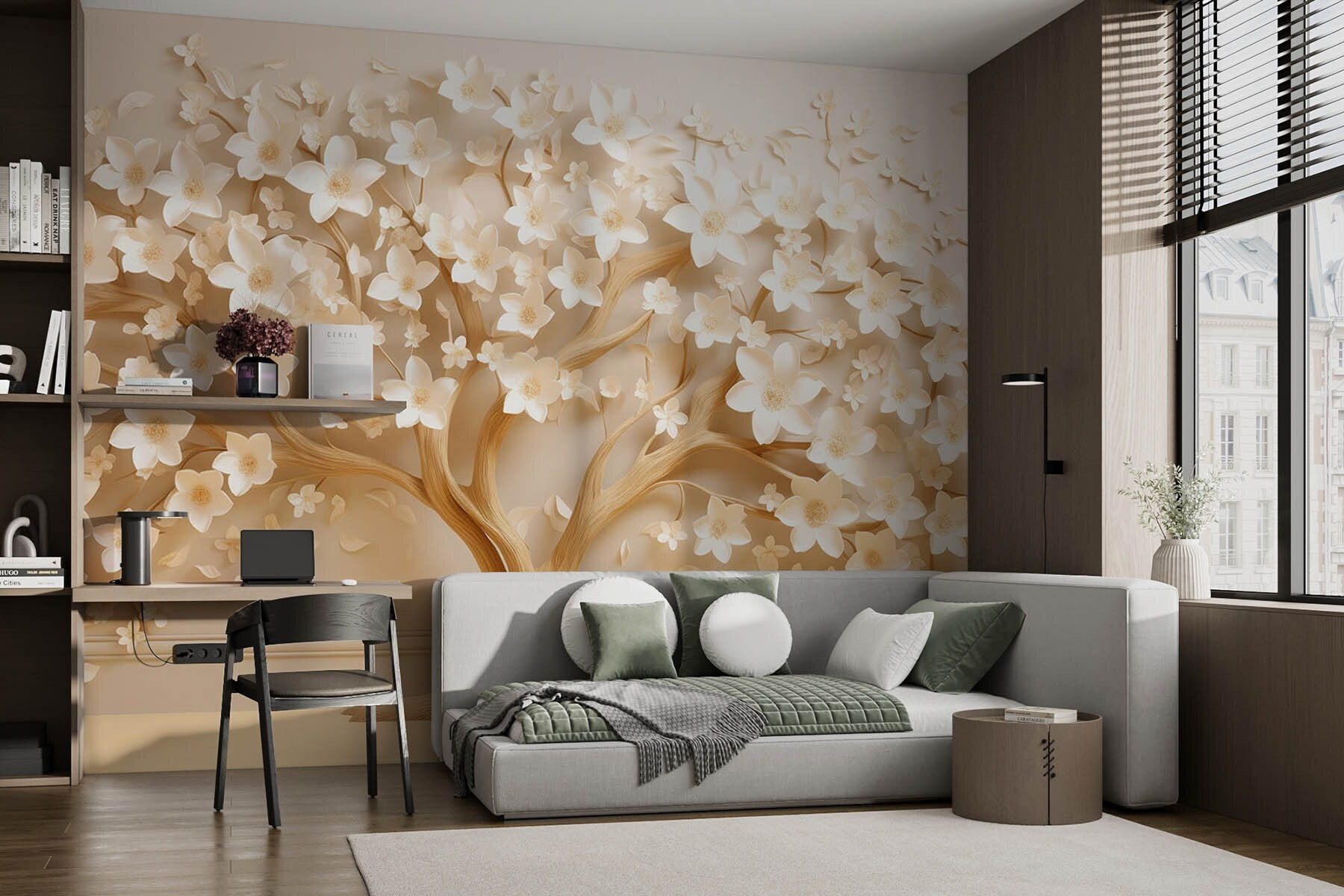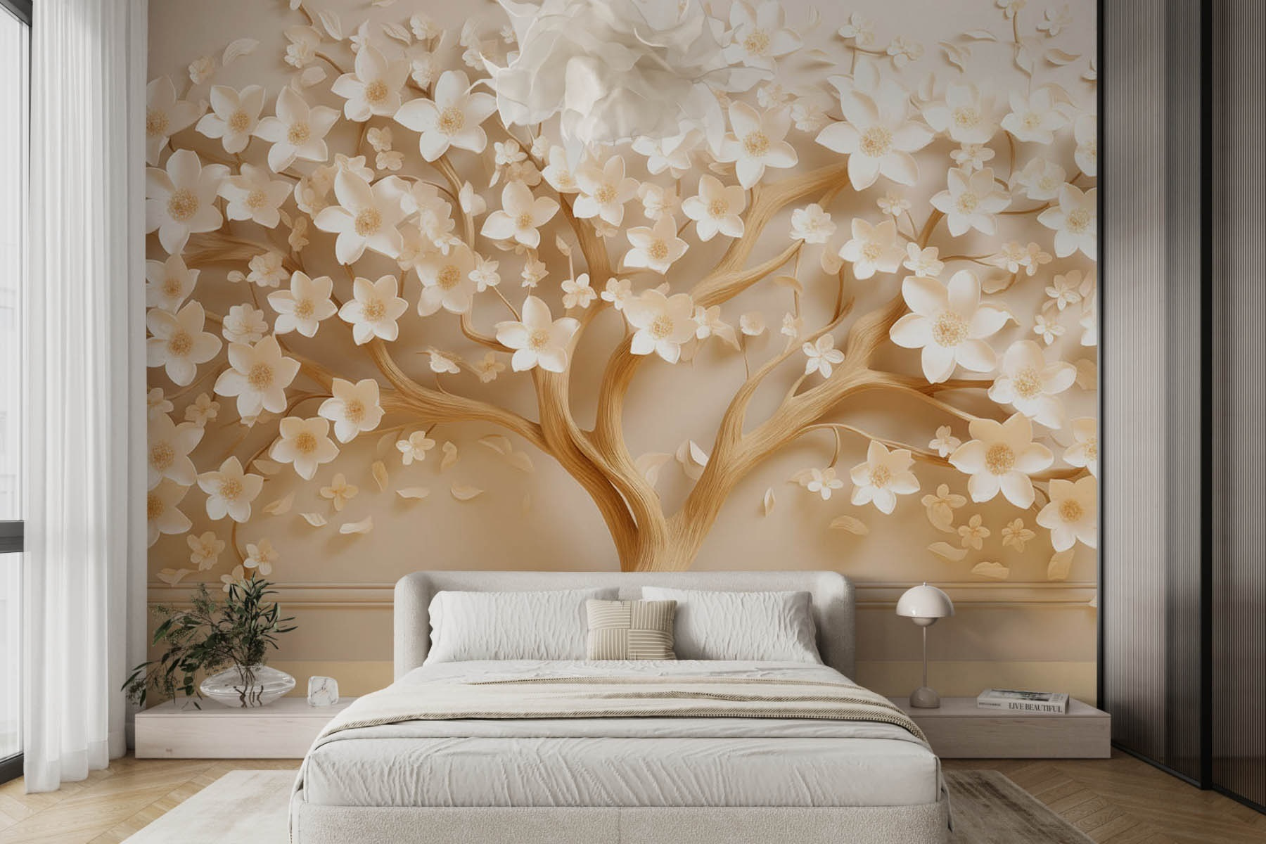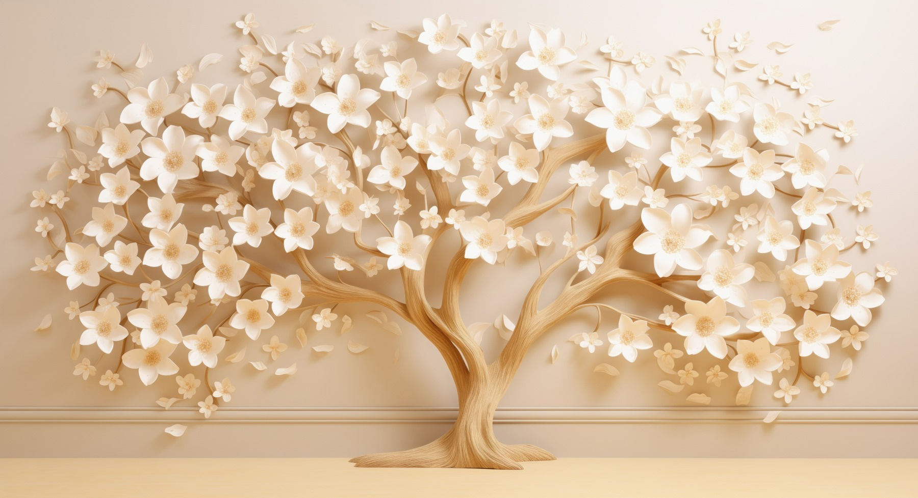 Premeňte svoj priestor pomocou tejto úžasnej nástennej maľby s elegantným stromom obrasteným krásnymi kvetmi. Akoby ste si do interiéru priniesli kúsok prírody bez otravného peľu. Predstavte si útulné rána so šálkou teplej kávy, keď len tak obdivujete jemné okvetné lístky tancujúce vo svetle. Táto nástenná maľba nie je len dekoráciou – je to zážitok. Priatelia sa možno dokonca pristihnú pri tom, ako na ňu hľadia a rozmýšľajú, či ju majú zaliať. Perfektne sa hodí do obývacej izby alebo pokojného kúta a dodáva krásny nádych pokoja. Kto povedal, že steny nemôžu kvitnúť?