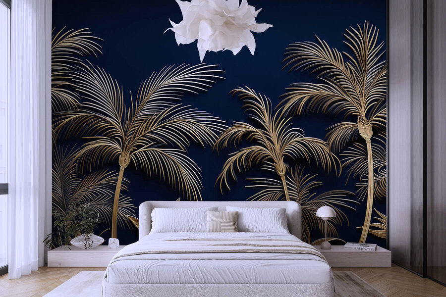 Premeňte svoj priestor s touto ohromujúcou nástennou maľbou, na ktorej sa elegantné palmy vlnia na tmavomodrom pozadí. Je to ako priniesť kúsok tropického raja priamo do vašej obývačky – bez vlhkosti a komárov. Bohaté, kontrastné farby vám aj v tých najdaždivejších dňoch pripomenú piesočné pláže a teplý vánok. Predstavte si, ako popíjate studený nápoj, ležíte pod týmito krásnymi palmami a okamžite sa cítite uvoľnení. Táto nástenná maľba nielen zdobí, ale aj vytvára atmosféru, vďaka ktorej sa akékoľvek miesto stáva pokojnejším a príjemnejším. Ideálna pre každého, kto chce uniknúť – aspoň vizuálne!