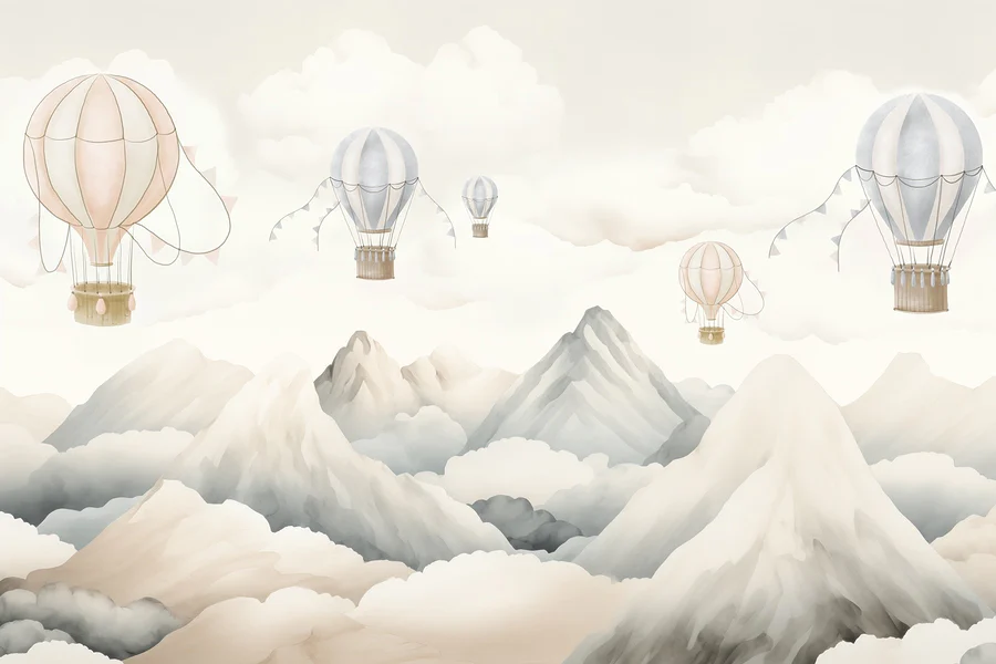 Predstavte si, že vstúpite do sveta, v ktorom sa teplovzdušné balóny lenivo vznášajú nad majestátnymi horami, obklopené jemnými, vejúcimi mrakmi. Táto nástenná maľba vnesie do každého priestoru pokojnú atmosféru, akoby ste sa pozerali z okna do zasnenej krajiny. Predstavte si útulný kútik, kde popíjate rannú kávu a cítite sa inšpirovaní dobrodružstvom, ktoré vás čaká hneď za vašimi stenami. Jemné pastelové farby nabádajú k teplu a pokoju, ideálne do detskej izby alebo uvoľneného obývacieho priestoru. Je to typ nástennej maľby, ktorá vyvoláva sny a vyzýva vás, aby ste si vychutnávali jednoduché radosti života – napríklad vznášanie sa v oblakoch.