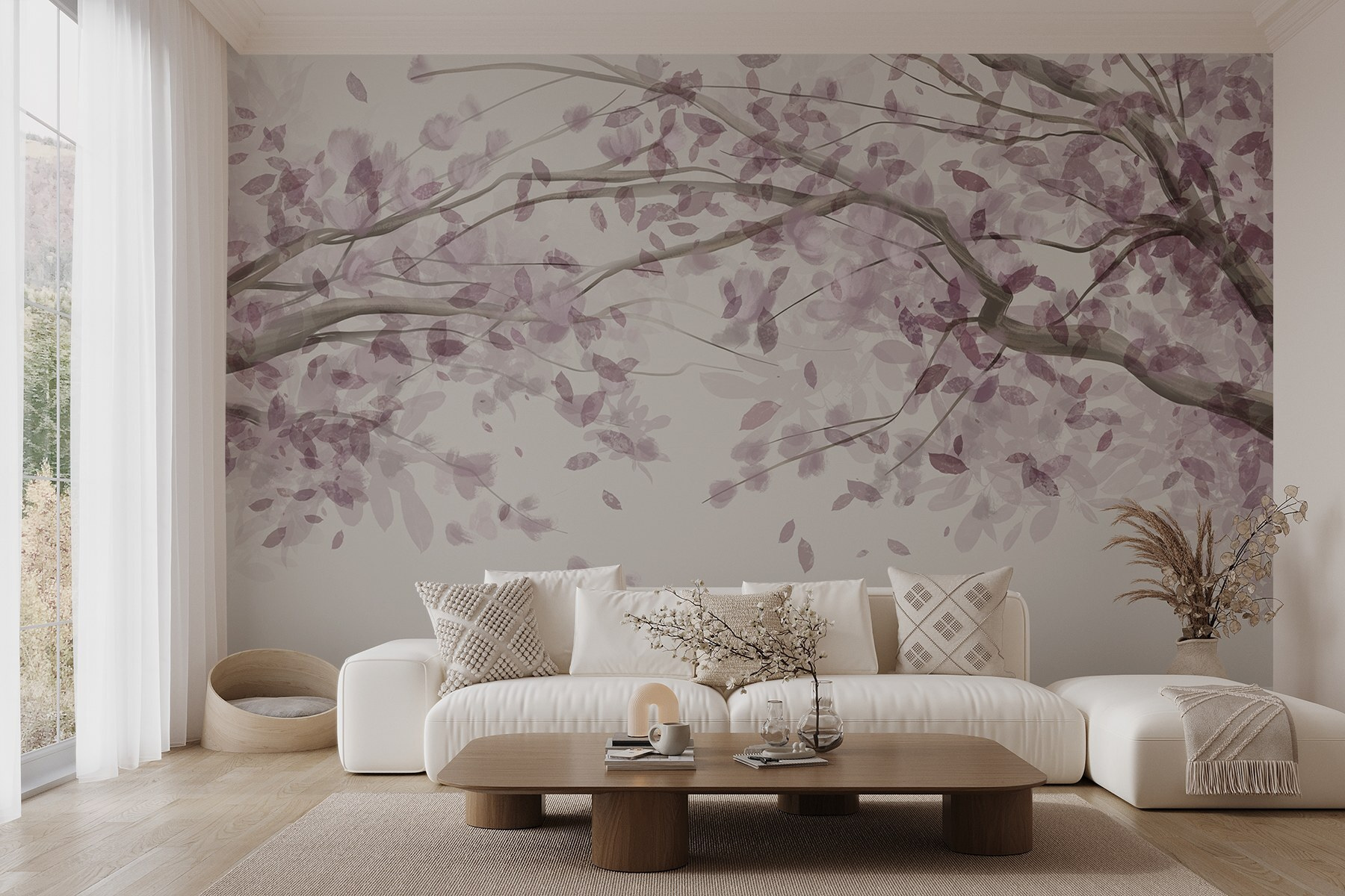 Premeňte akúkoľvek miestnosť na pokojné útočisko pomocou tejto očarujúcej nástennej maľby so stromom zdobeným elegantnými fialovými listami. Je to ako preniesť do interiéru kúsok upokojujúcej japonskej záhrady. Predstavte si, že popíjate čaj a pritom sa pozeráte na tieto jemné akvarelové vetvičky – taká nálada! Táto nástenná maľba šepká pokoj, takže je ideálna do útulného čitateľského kútika alebo hravej detskej izby. Navyše tie fialové odtiene? Dodávajú šmrnc bez toho, aby zahltili zmysly. Kto by nepocítil kúsok radosti vždy, keď ide okolo? Ideálne pre každého, kto doma hľadá nádych pôvabu prírody. Objímte krásu!