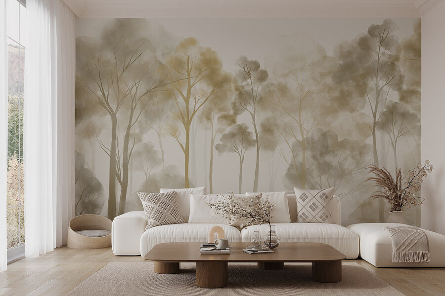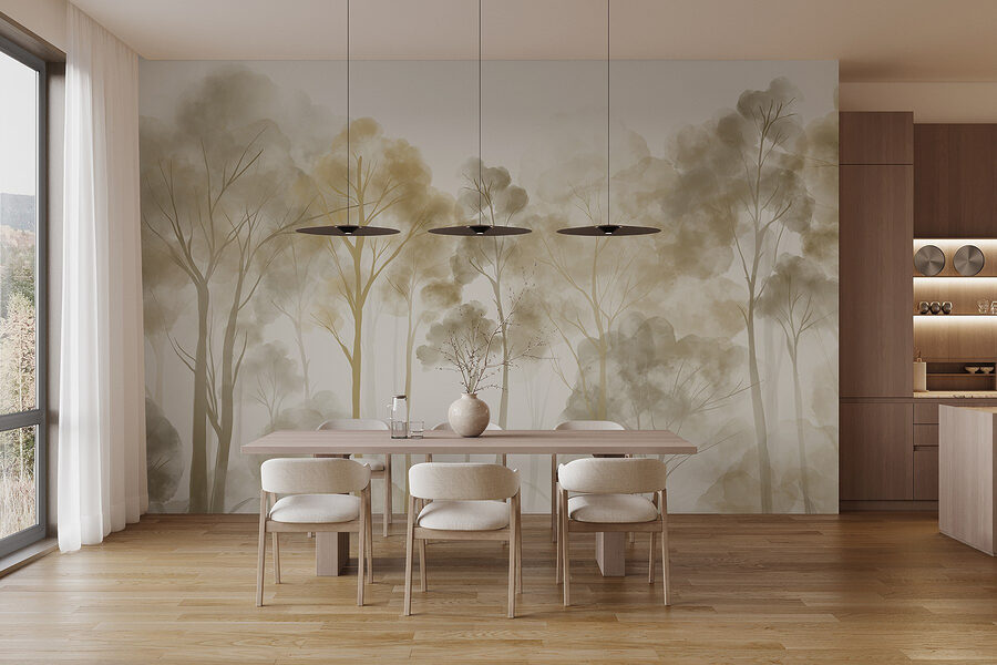 Premeňte svoj priestor na pokojný únik s touto krásnou nástennou maľbou stromov v hmlistom lese. Predstavte si, že vstúpite do snovej ríše, kde sa hmla ovíja okolo vysokých kmeňov a šepká tajomstvá prírody. Táto fototapeta prináša jemný nádych zemitých odtieňov, ktoré sú ideálne na vytvorenie útulnej atmosféry. Predstavte si, ako sa chúlite s knihou, keď jemné farby objímajú miestnosť – je to ako teplé objatie pre vaše steny. Či už ide o obývaciu izbu alebo čitateľský kútik, táto nástenná maľba dodá pokojnú atmosféru, ktorú každý miluje. Milovníci prírody, pripravte sa na to, že sa budete cítiť ako doma. Navyše, kto by nechcel mať miniatúrny les len na skok?
