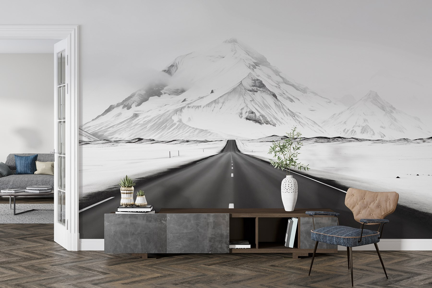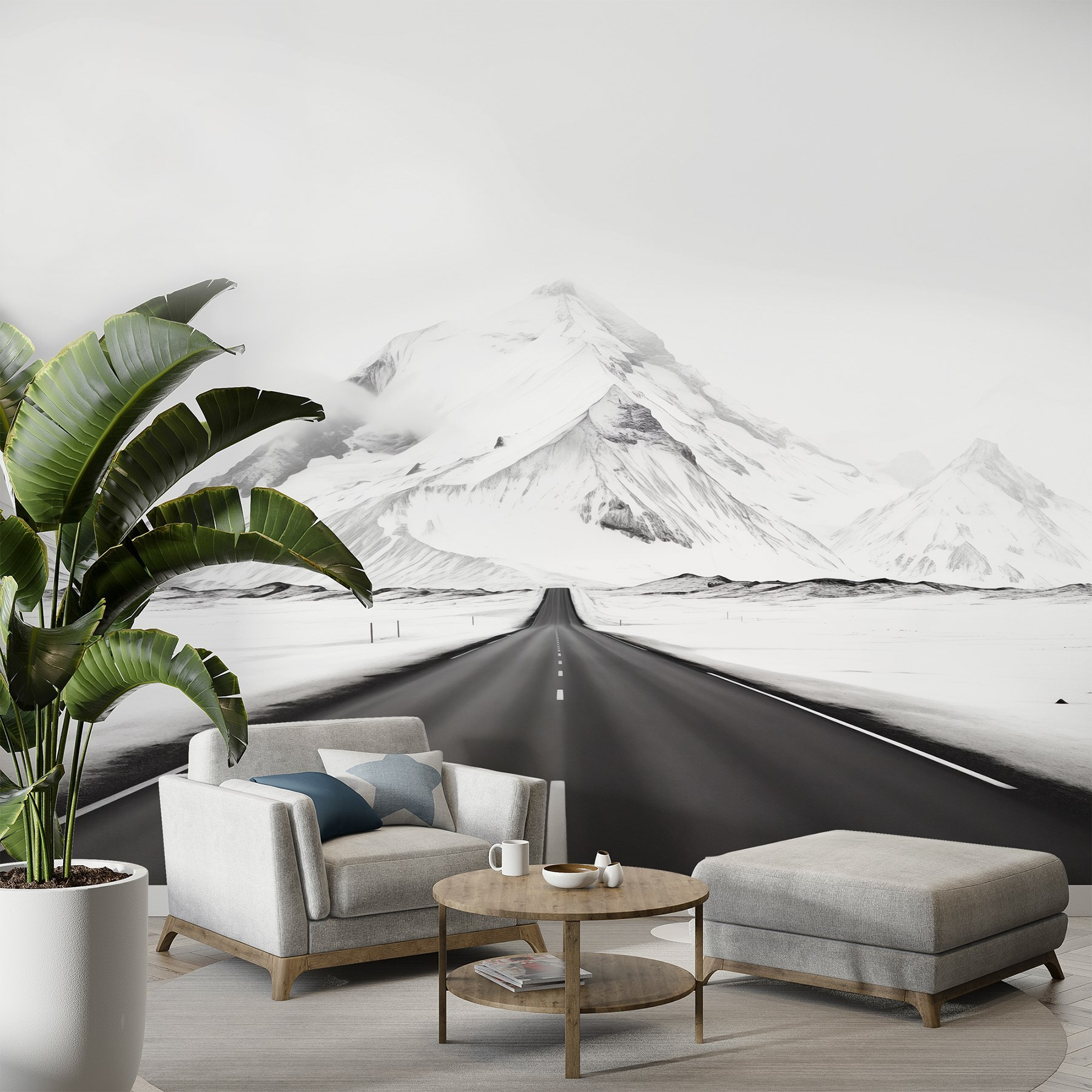 S touto úžasnou fototapetou premeníte každú miestnosť na zimnú krajinu zázrakov. Predstavte si rozľahlú otvorenú cestu tiahnucu sa k majestátnym zasneženým horám, ktorá vás láka na objavovanie veľkej prírody. Chladné tóny vás vtiahnu dovnútra a dodajú každému priestoru pocit sviežosti a príťažlivosti. Predstavte si, že sa uvelebíte s teplým nápojom, pozeráte na tento pokojný výhľad a cítite ten pokojný chlad vo vzduchu, aj keď ste uvelebení vnútri. Je to ako mať kúsok dobrodružstva priamo na stene, ktorý inšpiruje sny o spontánnych výletoch a mrazivých túrach. Ideálny pre milovníkov prírody alebo pre každého, kto chce do svojho interiéru vniesť štipku pokoja!