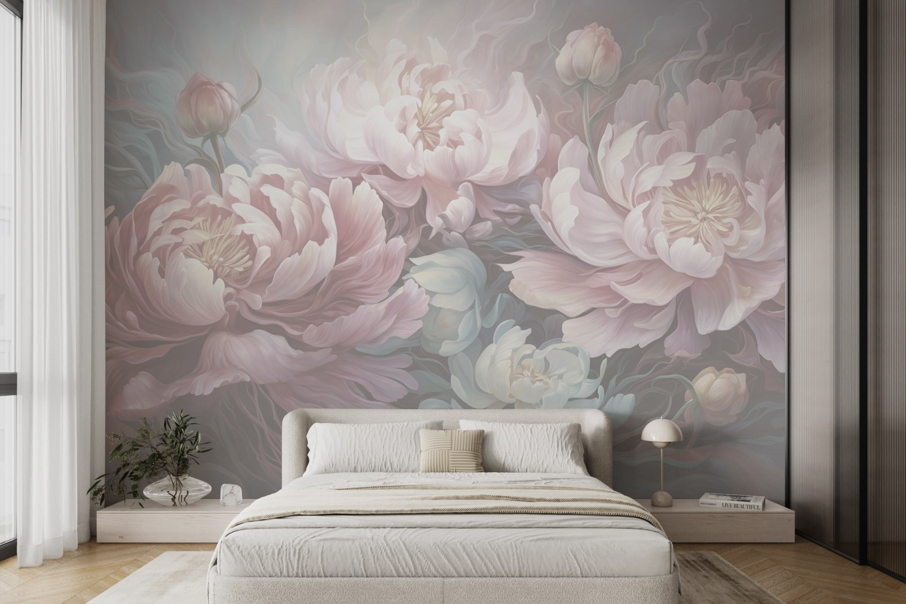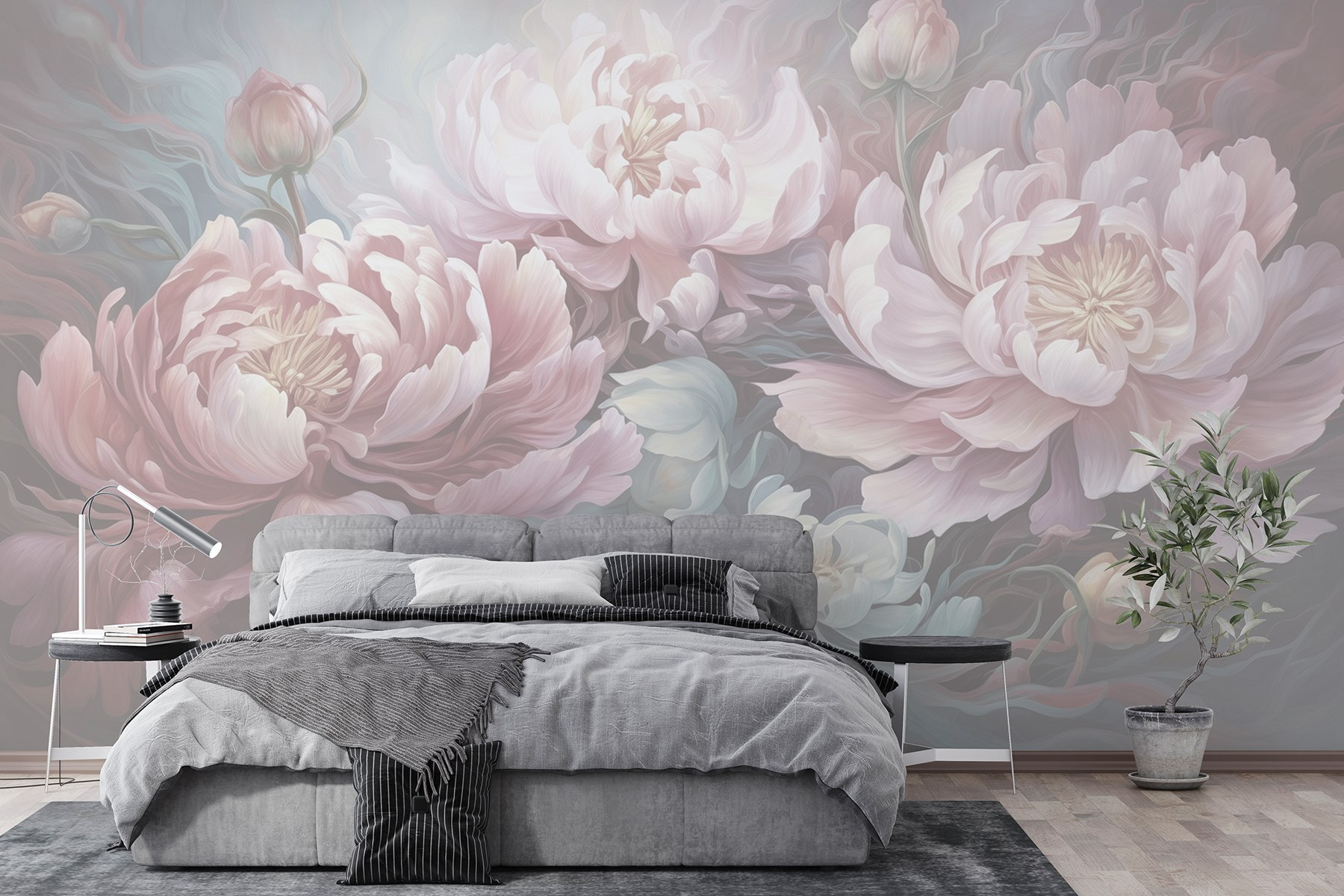 Premeňte akýkoľvek priestor na záhradu plnú rozmarov pomocou tejto úžasnej nástennej maľby s rozkvitnutými kvetmi na jemnom sivom pozadí. Predstavte si, že vstúpite do oázy pokoja priamo vo svojej obývačke! Jemné krivky a krehké okvetné lístky navodzujú pocit pokoja a šepkajú príbehy jari každý deň v roku. Táto nástenná maľba nie je len pekná; dodáva charakter a teplo, vďaka čomu sa hostia cítia, akoby boli pozvaní do útulnej kvetinovej krajiny zázrakov. Ideálny na dni, keď duša potrebuje trochu farebnej terapie – kto by nemiloval kvety, však? Rozžiaria miestnosť a náladu a premenia obyčajné chvíle na niečo očarujúce.