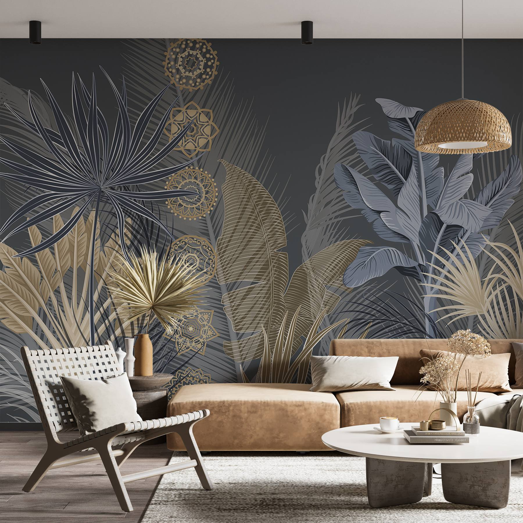 Premeňte každú miestnosť na útulnú oázu s touto pokojnou botanickou nástennou maľbou na tmavom pozadí. Predstavte si, že vstúpite do svojho priestoru a privíta vás svieže papradie a nápadné listy, ktoré sa takmer zdajú, že sa kolíšu s jemným vánkom. Je to ako preniesť kúsok prírody do interiéru, bez konve a zablatených topánok.