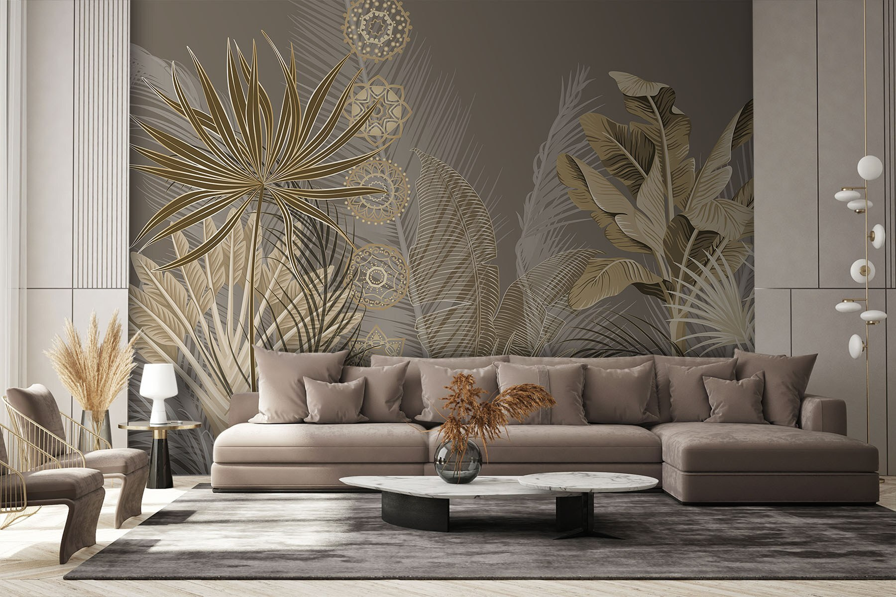 Premeňte akúkoľvek miestnosť na zasnený únik s touto nástennou maľbou “Elegantné lístie v jemných tónoch”. Predstavte si, že vojdete do svojho priestoru a privítajú vás jemné lístky, ktoré sa jemne kolíšu, akoby vás pozývali k odpočinku. Upokojujúca paleta sa dokonale hodí k rôznym štýlom a dodáva im nádych tropického šarmu bez toho, aby zahltila zmysly. Predstavte si, ako si vychutnávate šálku kávy a len tak sa ponárate do pokojných vibrácií. Priatelia budú nad týmto jedinečným dotykom omdlievať. Je to ako malý kúsok prírody priamo v interiéri, ktorý vyvoláva útulné pocity a šepot dobrodružného raja. Ideálne na oživenie stien!