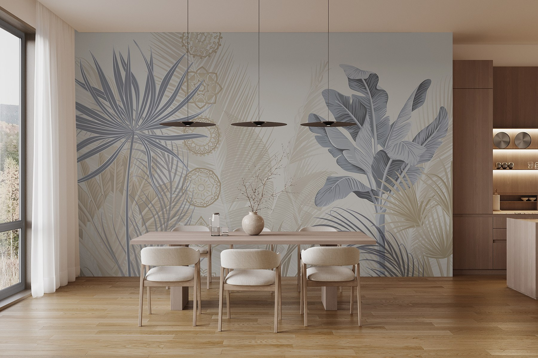 S touto éterickou botanickou nástennou maľbou premeníte každú miestnosť na pokojnú oázu. Predstavte si, že sa zobudíte a na stenách vám budú jemne tancovať jemné listy a mäkké odtiene – akoby sa príroda práve pozvala dnu. Jemné tóny vytvárajú upokojujúcu atmosféru, ktorá je ideálna na popíjanie rannej kávy alebo oddych po dlhom dni. Predstavte si útulné večery, pri ktorých sa stretávajú priatelia a obdivujú krásu okolo seba. Nie je to len dekor, je to pocit. Táto nástenná maľba, ideálna do obývačky alebo pokojného čitateľského kútika, šepká relaxáciu a tvorivosť zároveň. Kto by nechcel žiť v botanickom sne?