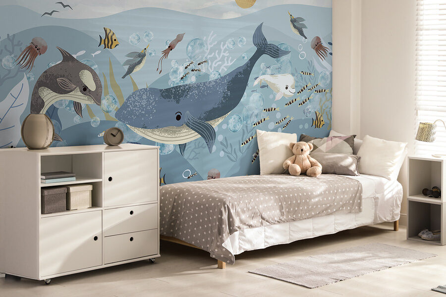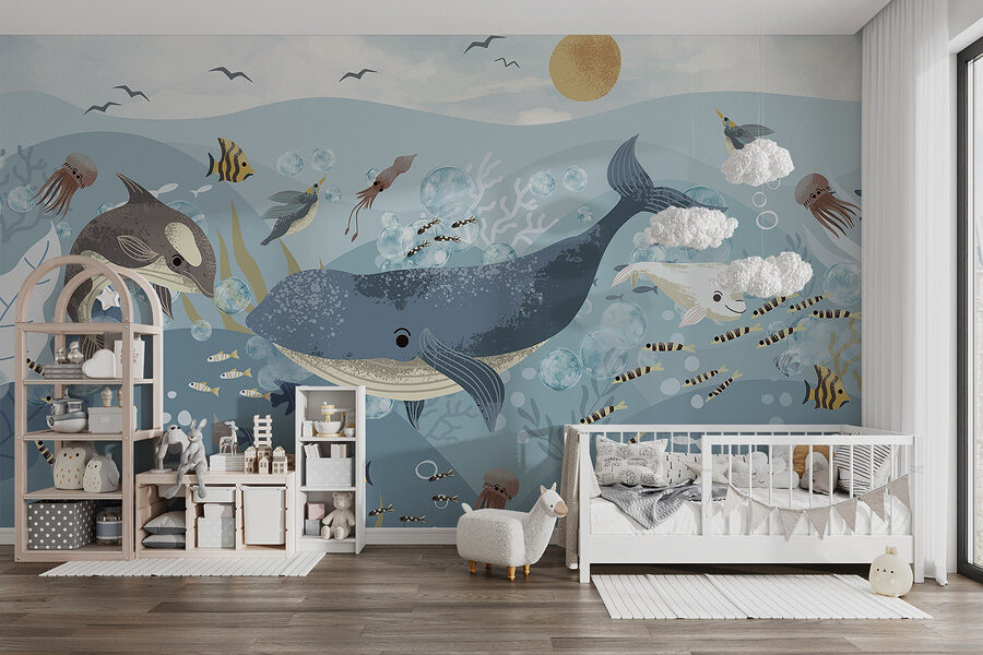 Ponorte sa do sveta rozmarov s touto nástennou maľbou, na ktorej je živá zmes rýb a veľrýb, ktoré sa preháňajú pod jemnými vlnami oceánu. Predstavte si deti, ako sa chichocú, pozorujú farebné medúzy a rozkošné delfíny, ktoré plávajú okolo. Je to ako kŕmiť svoju fantáziu raňajkami s prídavkom dobrodružstva! Priatelia sa budú unášať do miestnosti a okamžite pocítia chladivý oceánsky vánok (alebo si ho aspoň predstavia). Táto fototapeta, ktorá je ideálna do detskej izby alebo útulného čitateľského kútika, premení každú stenu na spleť šťastia. Tak smelo do toho, nechajte túto podmorskú párty rozžiariť tieto nudné priestory!
