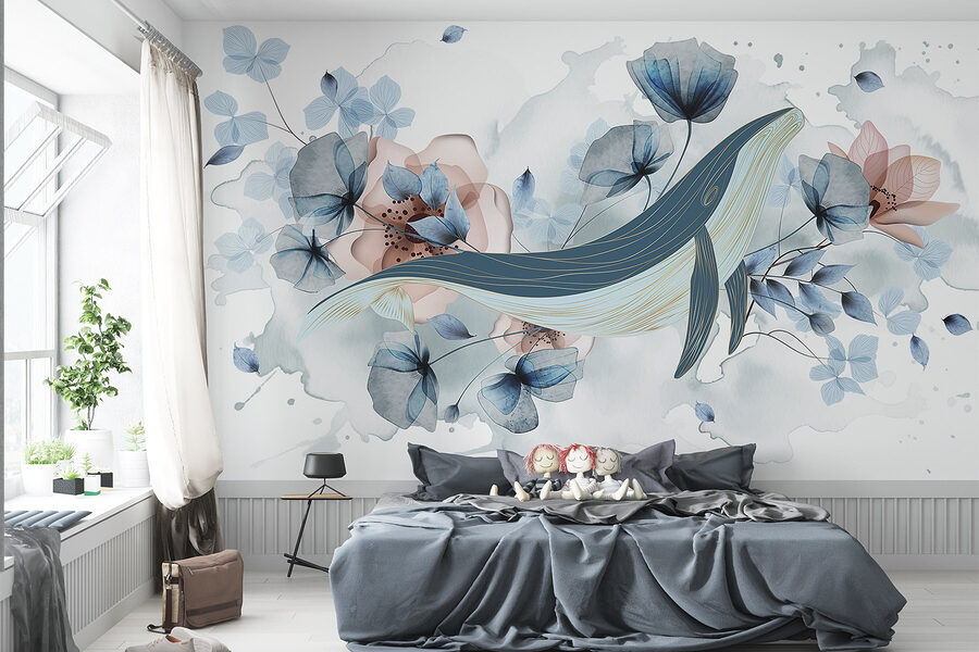 Premeňte svoj priestor pomocou tejto očarujúcej nástennej maľby veľryby plávajúcej medzi jemnými kvetmi a listami. Prinesie jemný dotyk oceánu priamo do vášho domova. Predstavte si zasnené popoludnie strávené leňošením v útulnom kútiku, zatiaľ čo vás jemné pastelové farby a plynulé línie unášajú do prímorského pokoja. Akoby vám oceán našepkával tajomstvá dobrodružstva, orámované krásou prírody. Ideálny do detskej izby, upokojujúceho kancelárskeho priestoru alebo kamkoľvek, kde by sa hodil závan rozmarnosti. Navyše je to malá pripomienka, že aj tie najväčšie tvory si môžu užívať kvetinové snenie. Ponorte sa do sveta, kde sa umenie stretáva s pokojom!