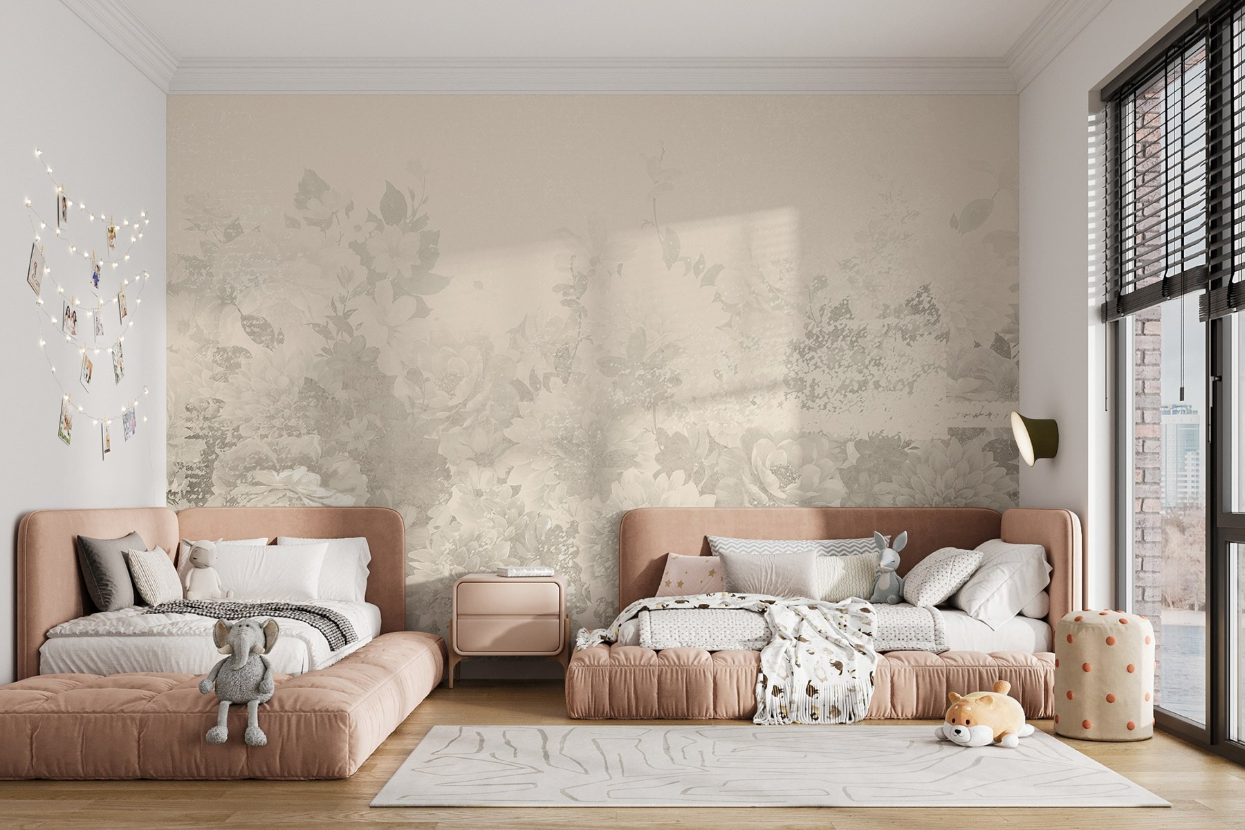 Či už ide o útulný kútik alebo živú obývaciu izbu, táto nástenná maľba dodáva nádych rozmarnosti, ktorý prinúti hostí urobiť dvojitý záber. Kvetinové vzory prinášajú život a energiu – kto by nechcel, aby mu deň rozjasnilo čaro rozkvitnutých kvetov? Je to umelecký dotyk, ktorý pôsobí osviežujúco a prívetivo, ako teplé objatie od priateľa.