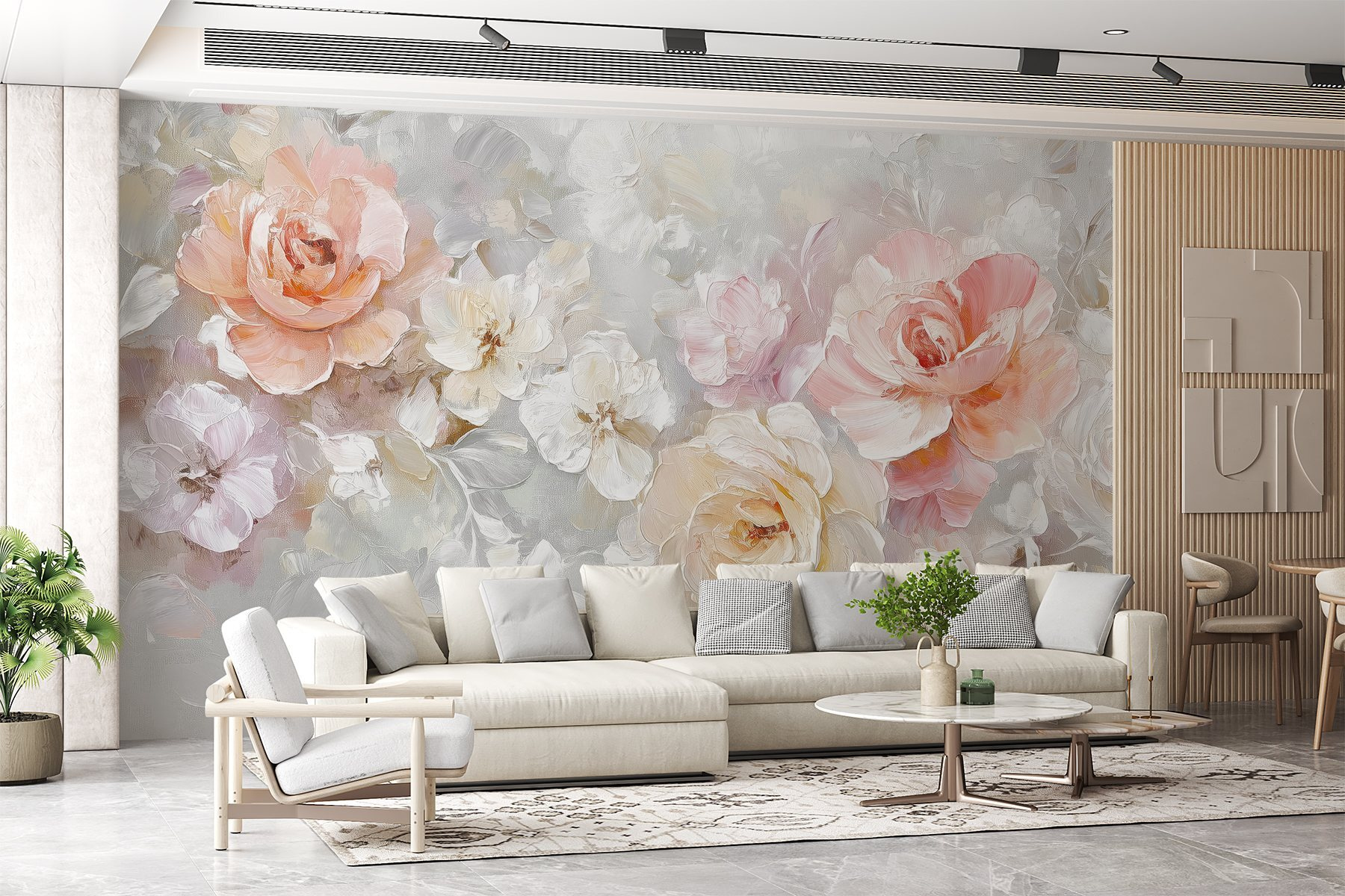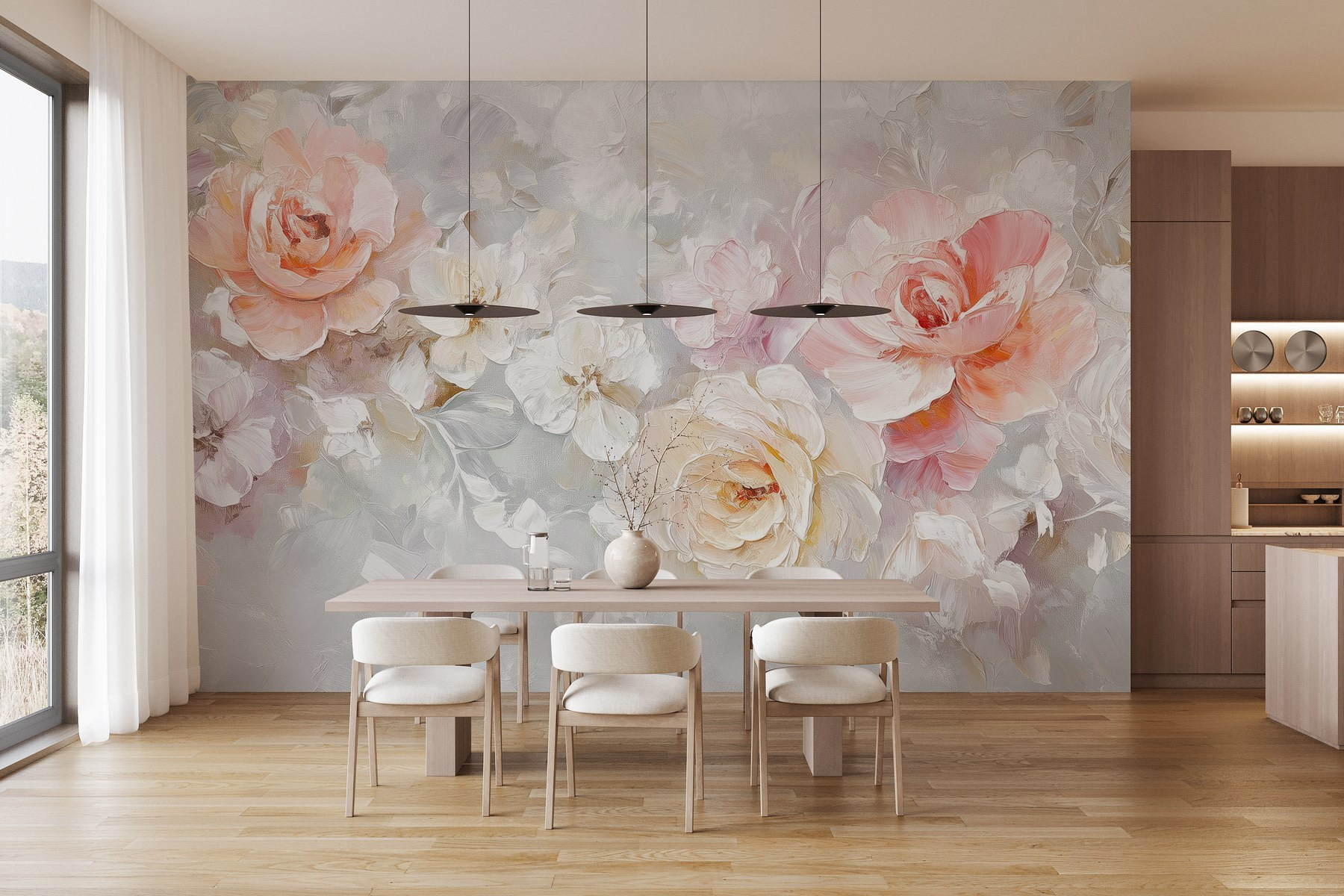 Premeňte svoj priestor pomocou tejto krásnej nástennej maľby s kvetmi na jemnom bielom pozadí. Predstavte si, že každý deň vstúpite do záhrady, kde kvitnú jemné okvetné lístky len pre vás. Jemné farby vytvárajú pokojnú atmosféru, ktorá je ideálna pre útulný čitateľský kútik alebo optimistickú kuchyňu. Predstavte si, ako sa priatelia stretávajú, a keď obdivujú umelecké dielo, nemôžu si pomôcť a cítia sa o niečo šťastnejší. Je to ako priniesť si kúsok prírody do interiéru, bez potreby zalievania alebo otravného peľu. Len čistá vizuálna radosť – kto by to bol povedal, že nástenná maľba dokáže tak zlepšiť náladu?